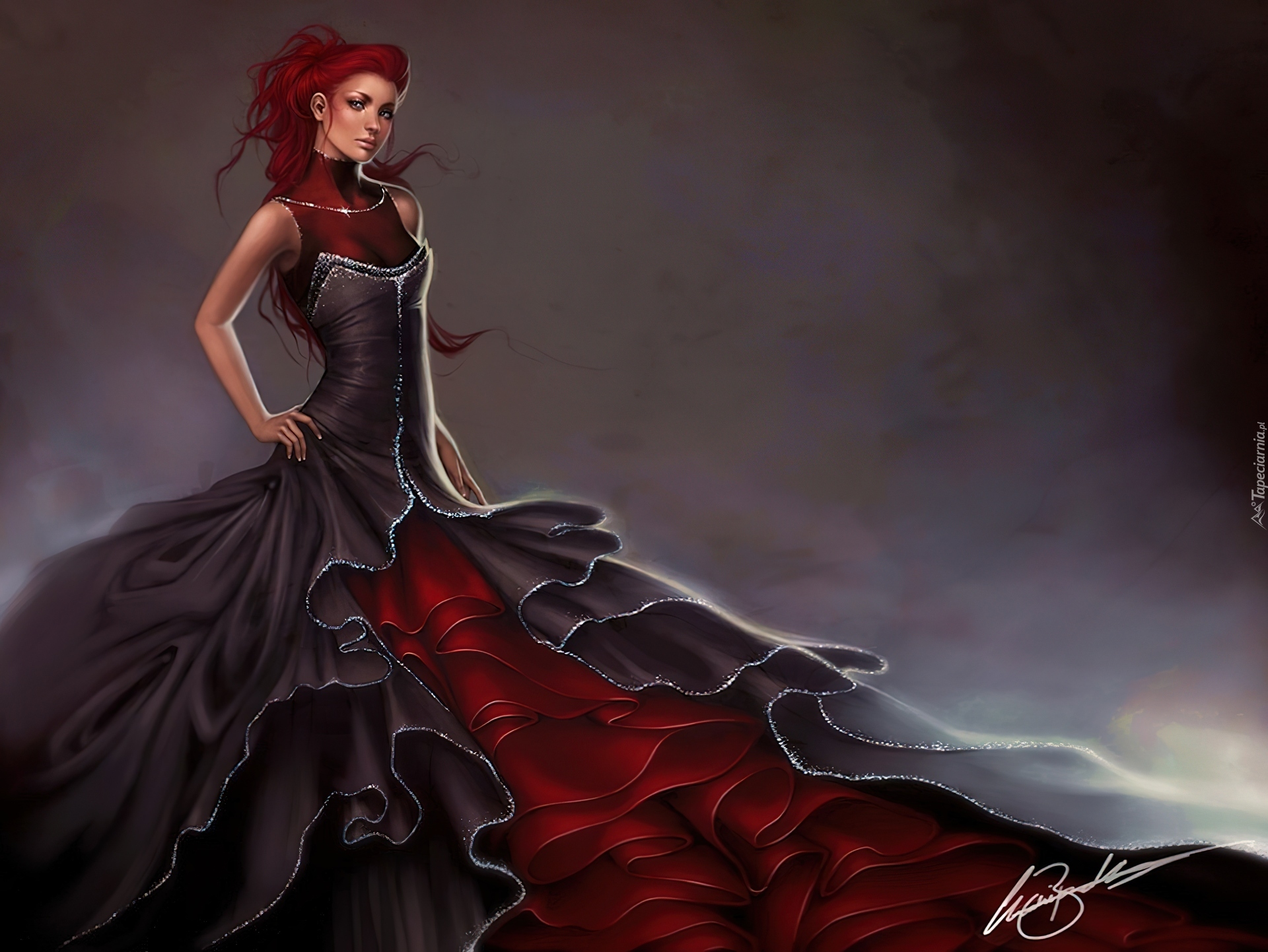 Edytor tapety: Kobieta, Czarno, Czerwona, Suknia
