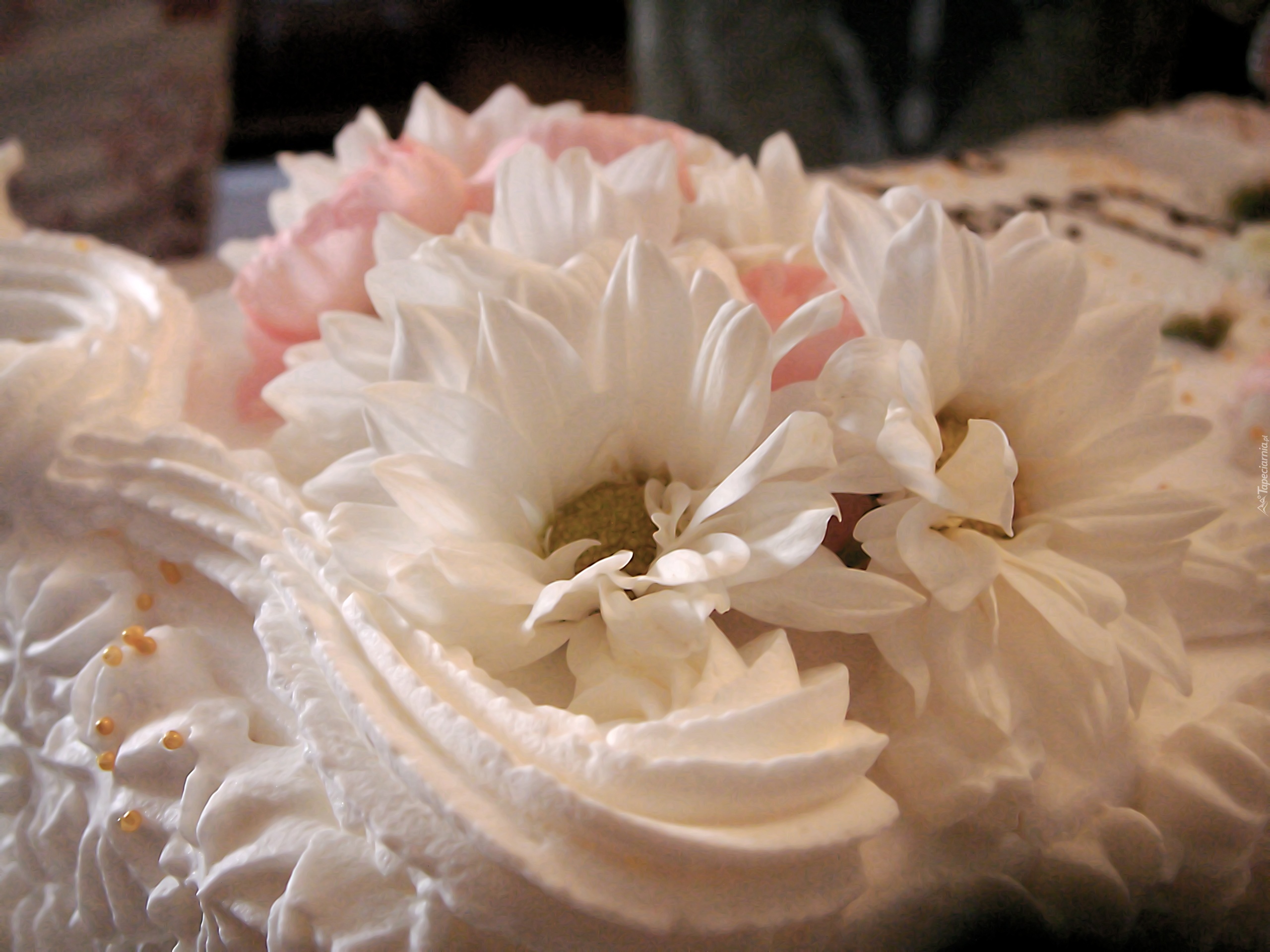 Edytor tapety: Margaretki, Tort, Bita, Śmietana