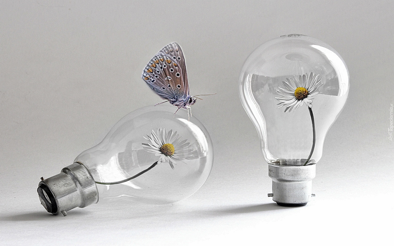 Edytor tapety: Żarówki, Kwiatki, Motyl