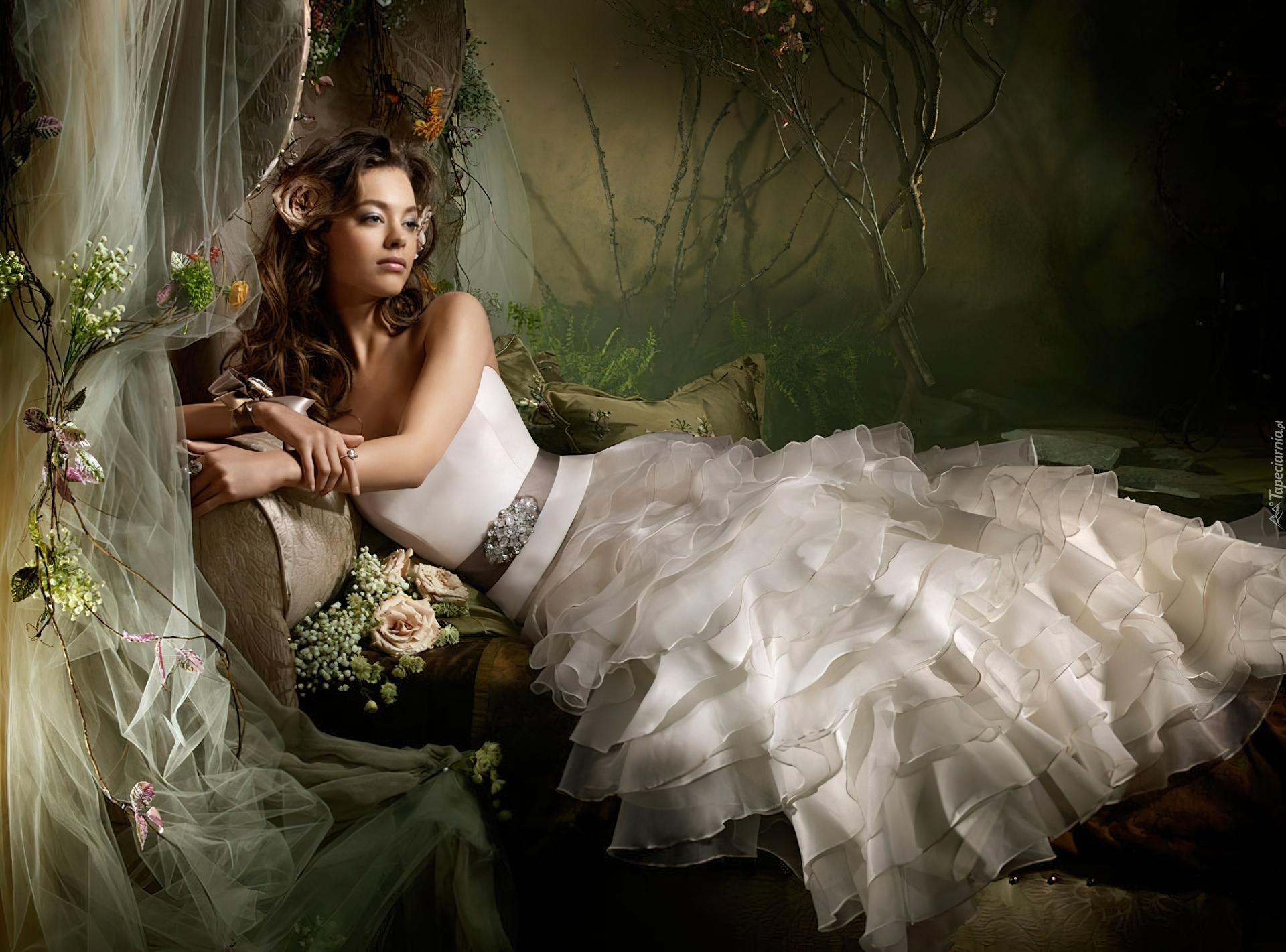 Edytor tapety: Kobieta, Kwiaty, Leżanka, Drzewa