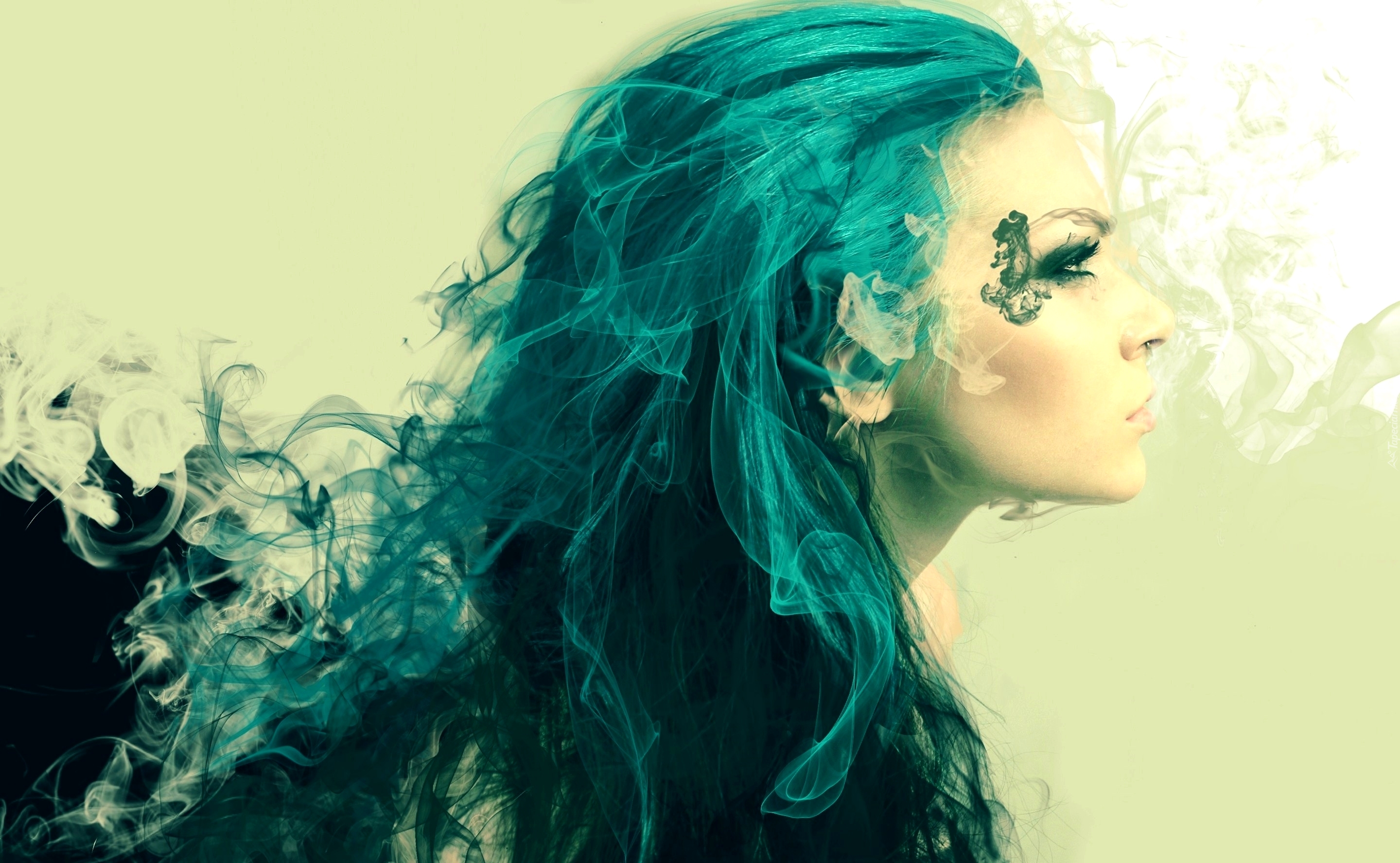 Edytor tapety: Kobieta, Grafika, Niebieskie, Włosy