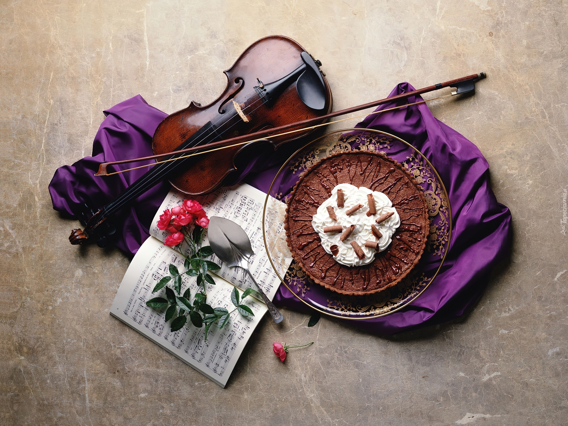 Edytor tapety: Deser, Skrzypce, Nuty