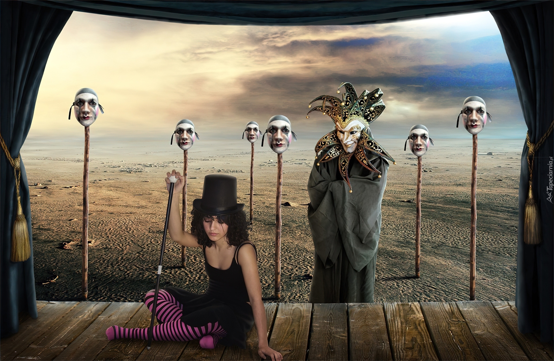 Edytor tapety: Kobieta, Cylinder, Maski