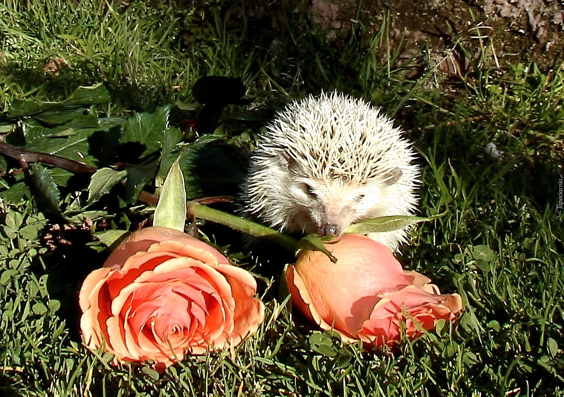 Edytor tapety: Jeż, Róże, Trawa