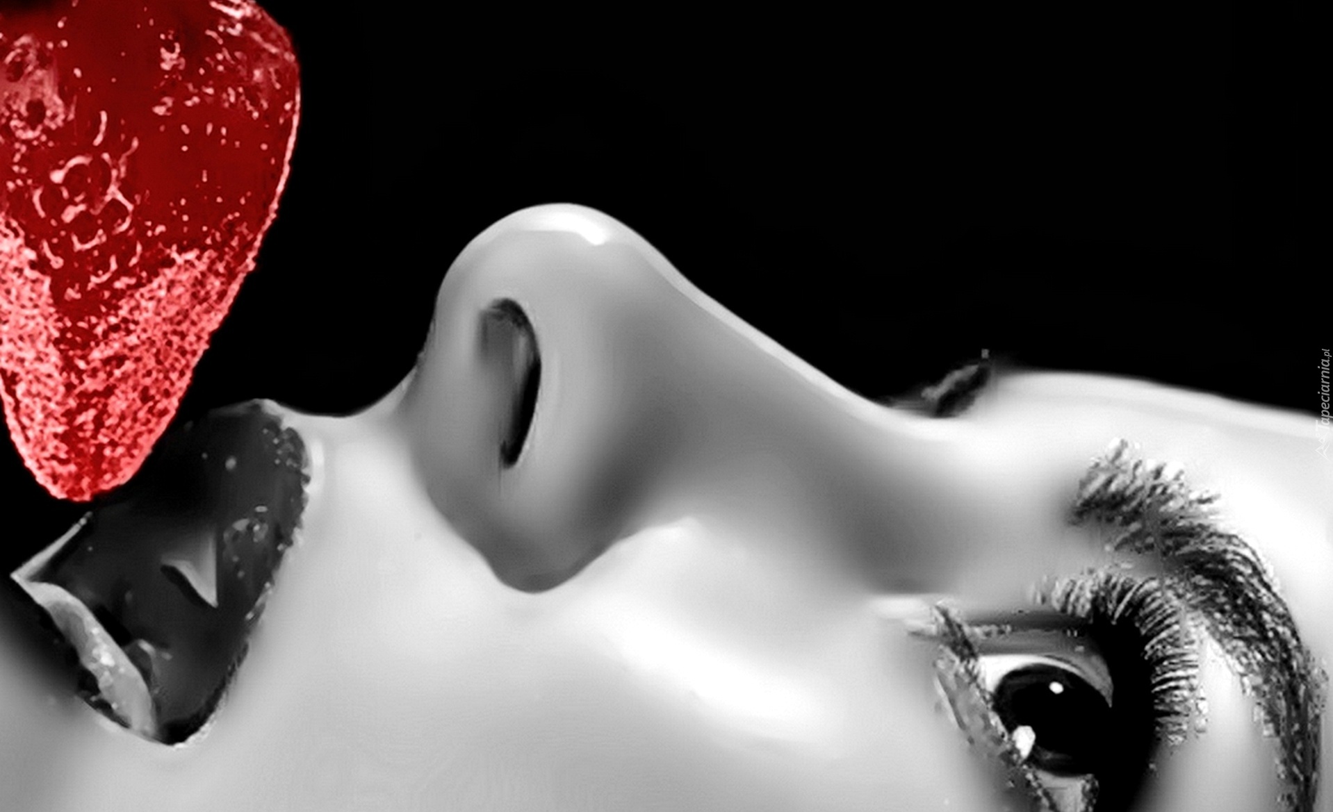 Edytor tapety: Kobieta, Spojrzenie, Truskawka