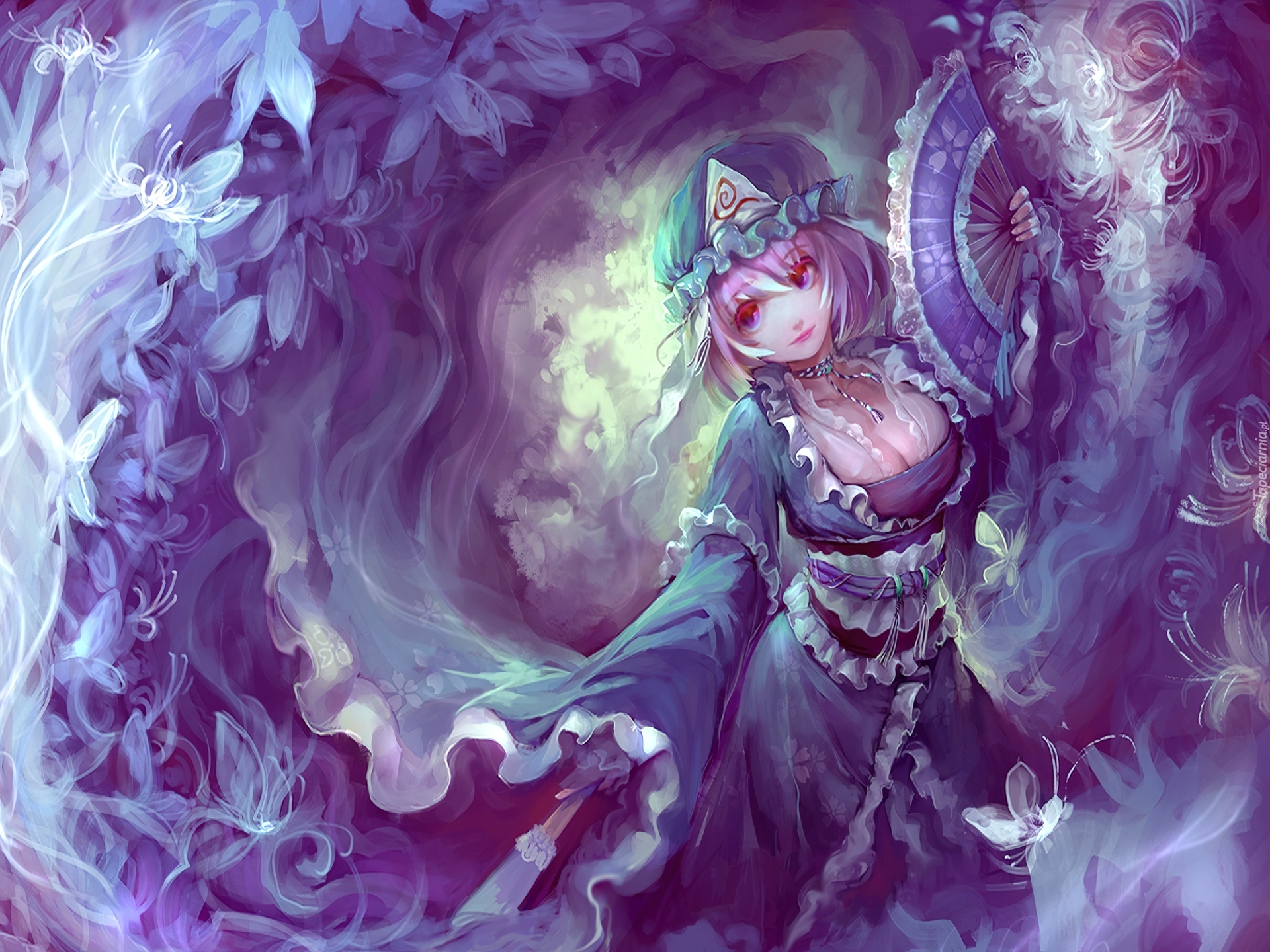 Edytor tapety: Dziewczyna, Wachlarz, Fioletowa, Suknia
