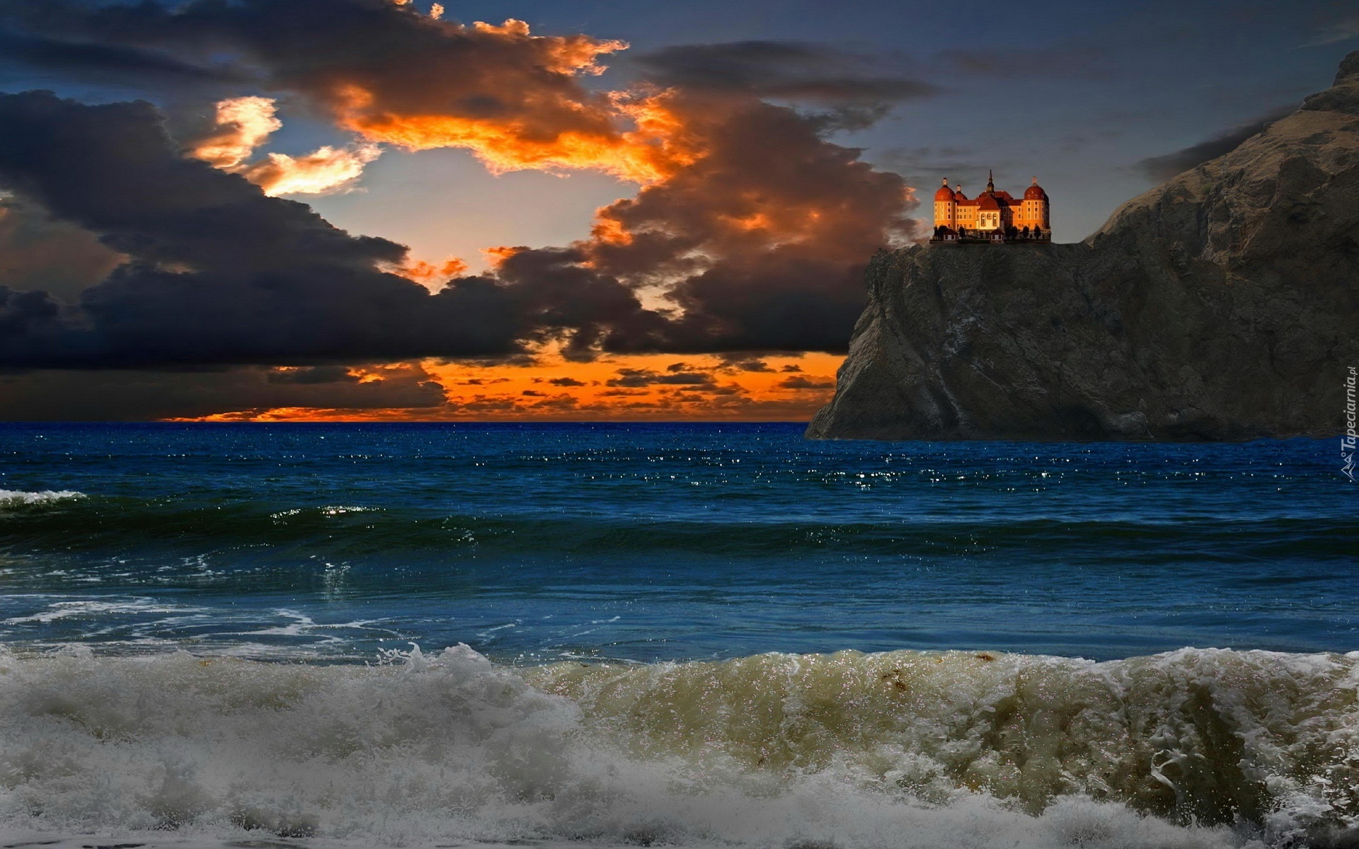 Edytor tapety: Niebo, Morze, Skały, Pałac