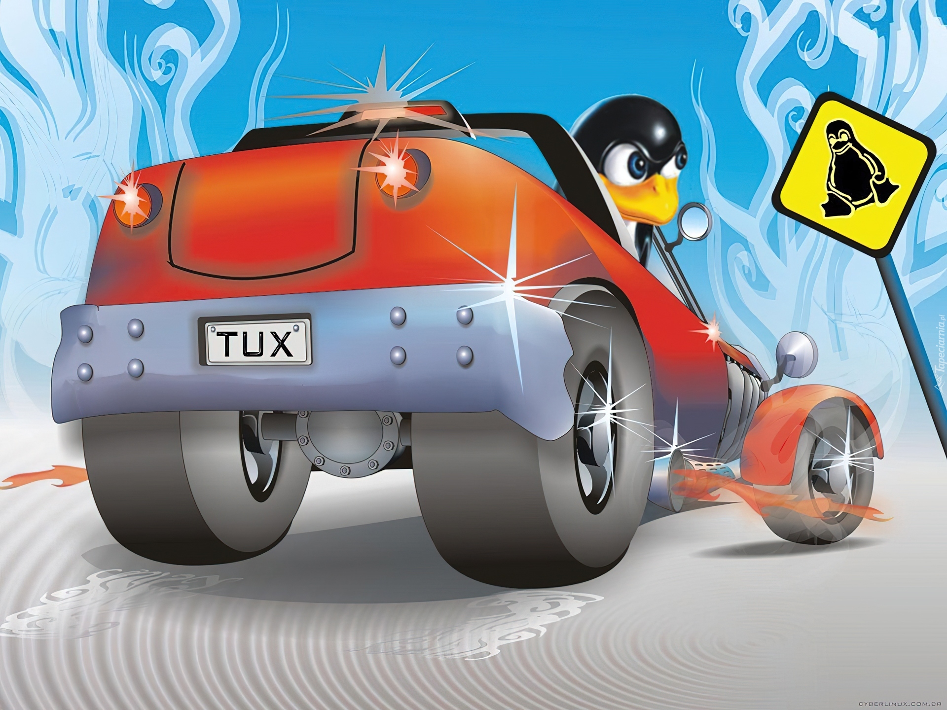 Edytor tapety: Linux, Pigwin, Pigwinek, Samochód, znak