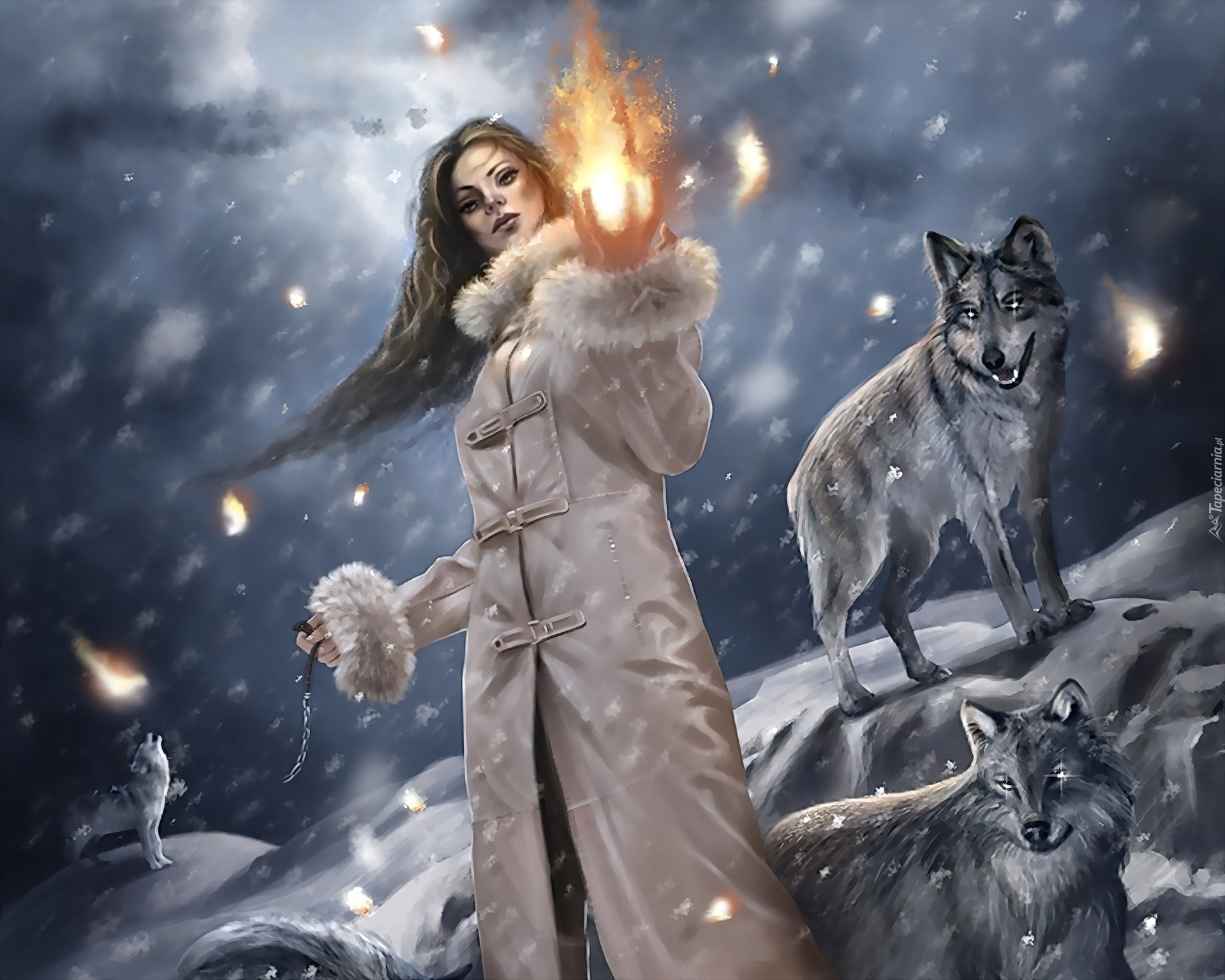 Edytor tapety: Dziewczyna, Wilki, Światło