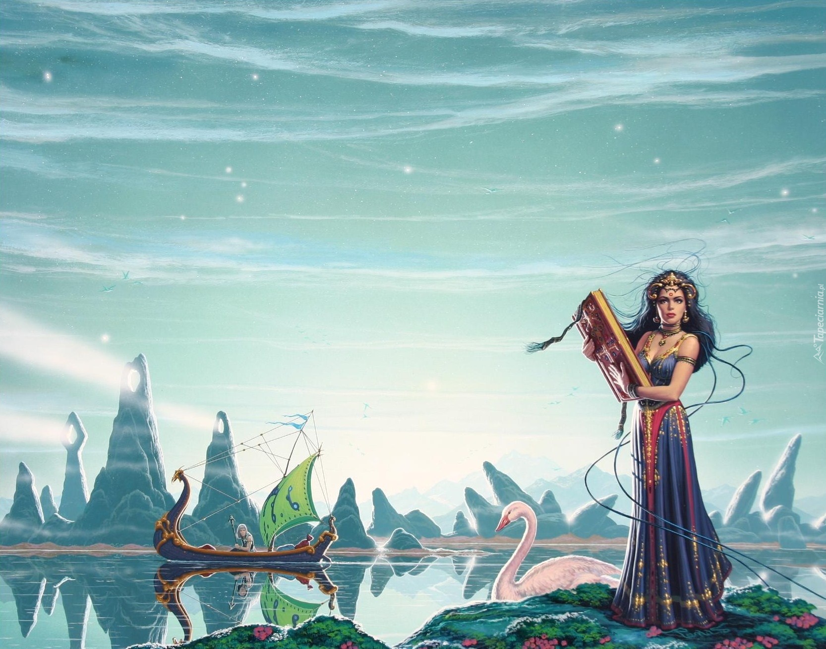 Edytor tapety: Dziewczyna, Książka, Woda