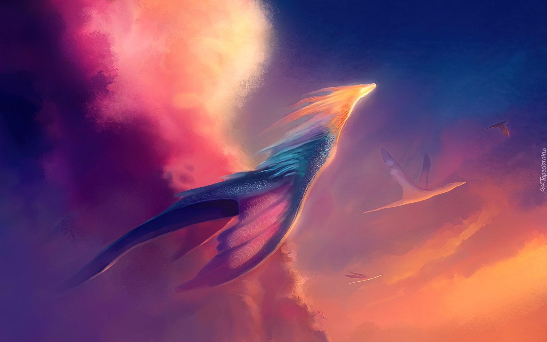 Edytor tapety: Kolorowe, Niebo, Smoki