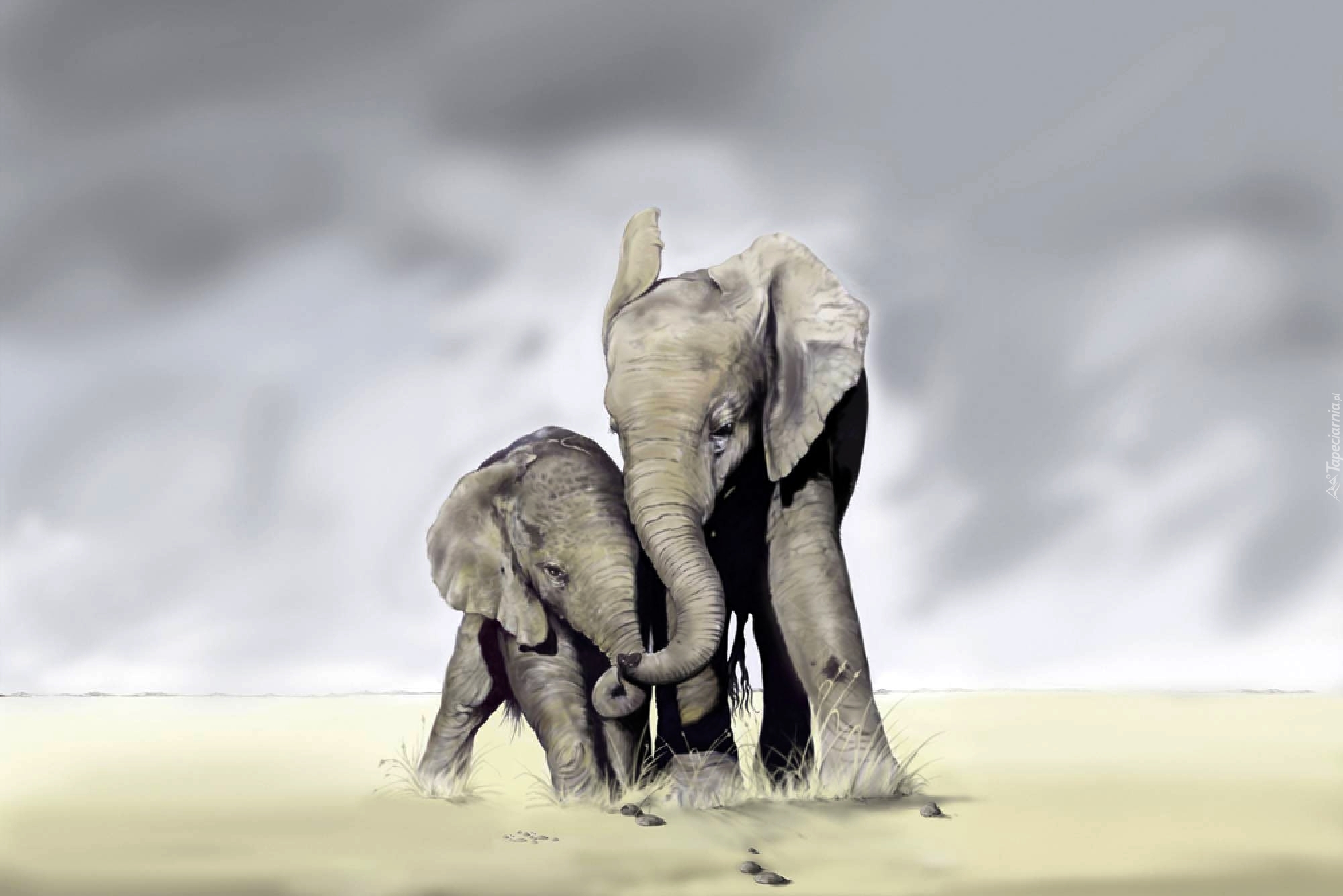 Edytor tapety: Słonica, Małe, Słoniątko