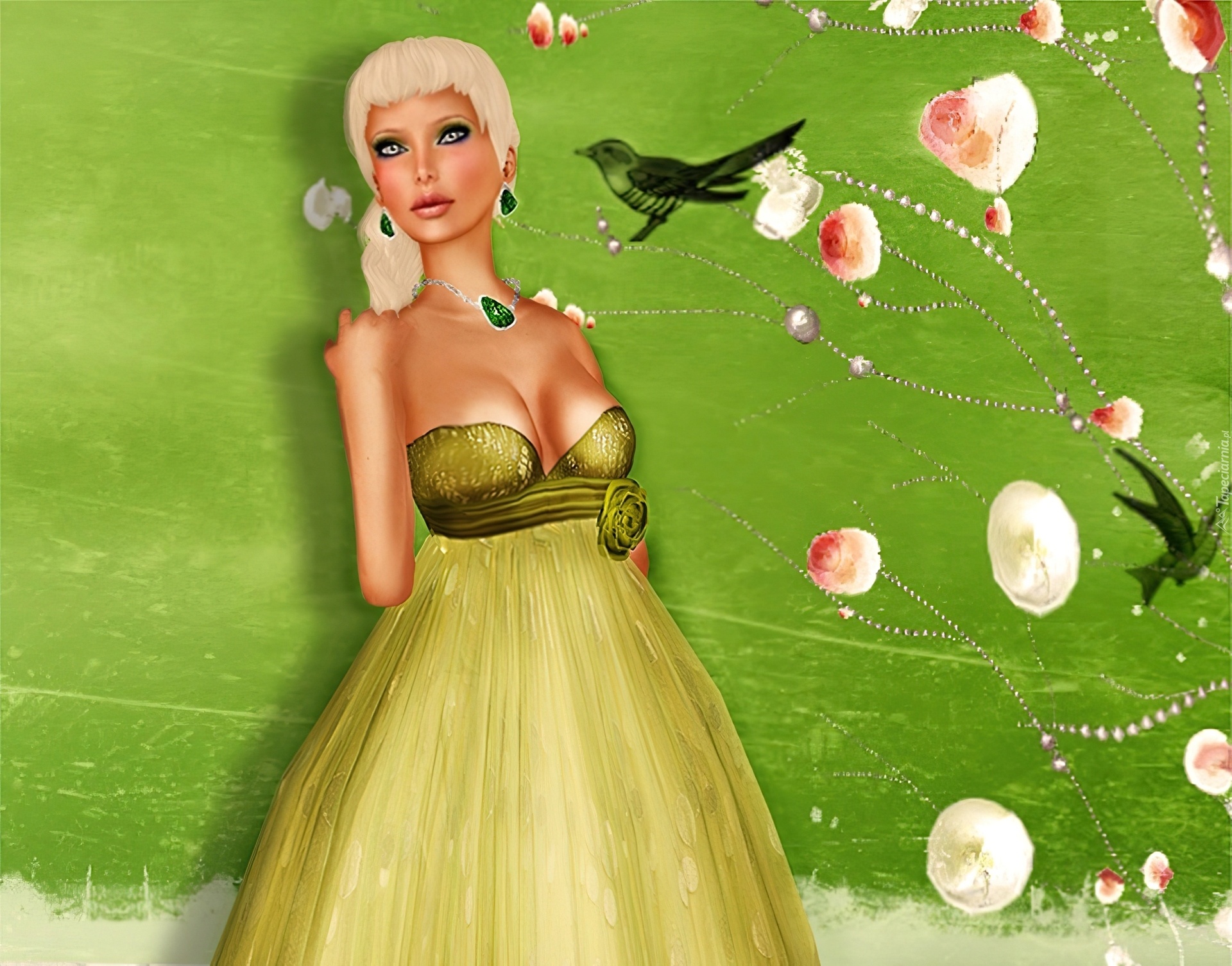 Edytor tapety: Kobieta, Blondynka, Ptaki, Grafika