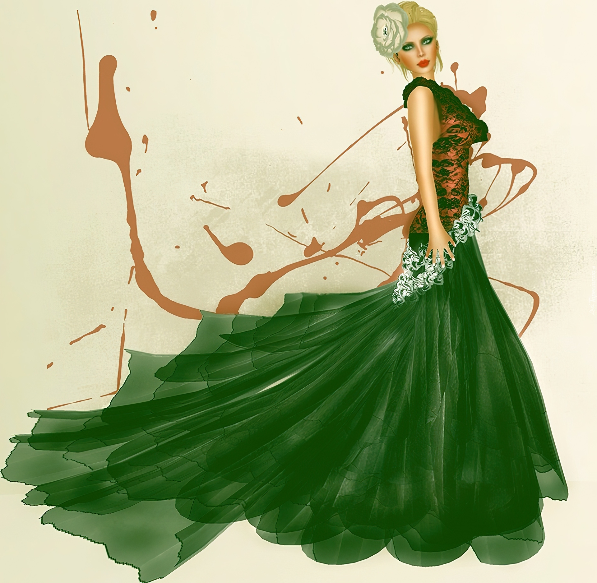 Edytor tapety: Kobieta, Zielona, Suknia, Grafika