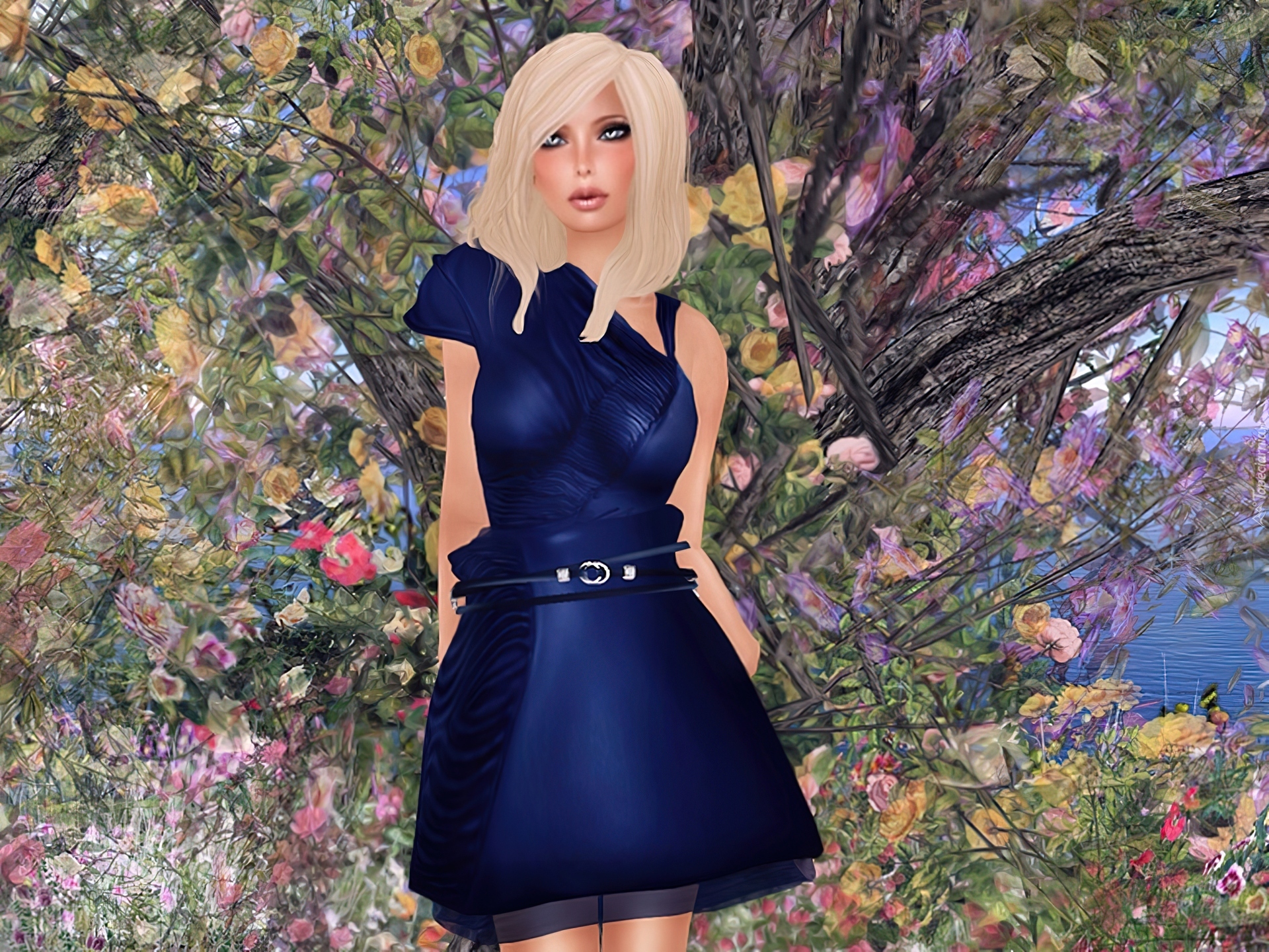Edytor tapety: Kobieta, Ogród, Kwiaty, Grafika