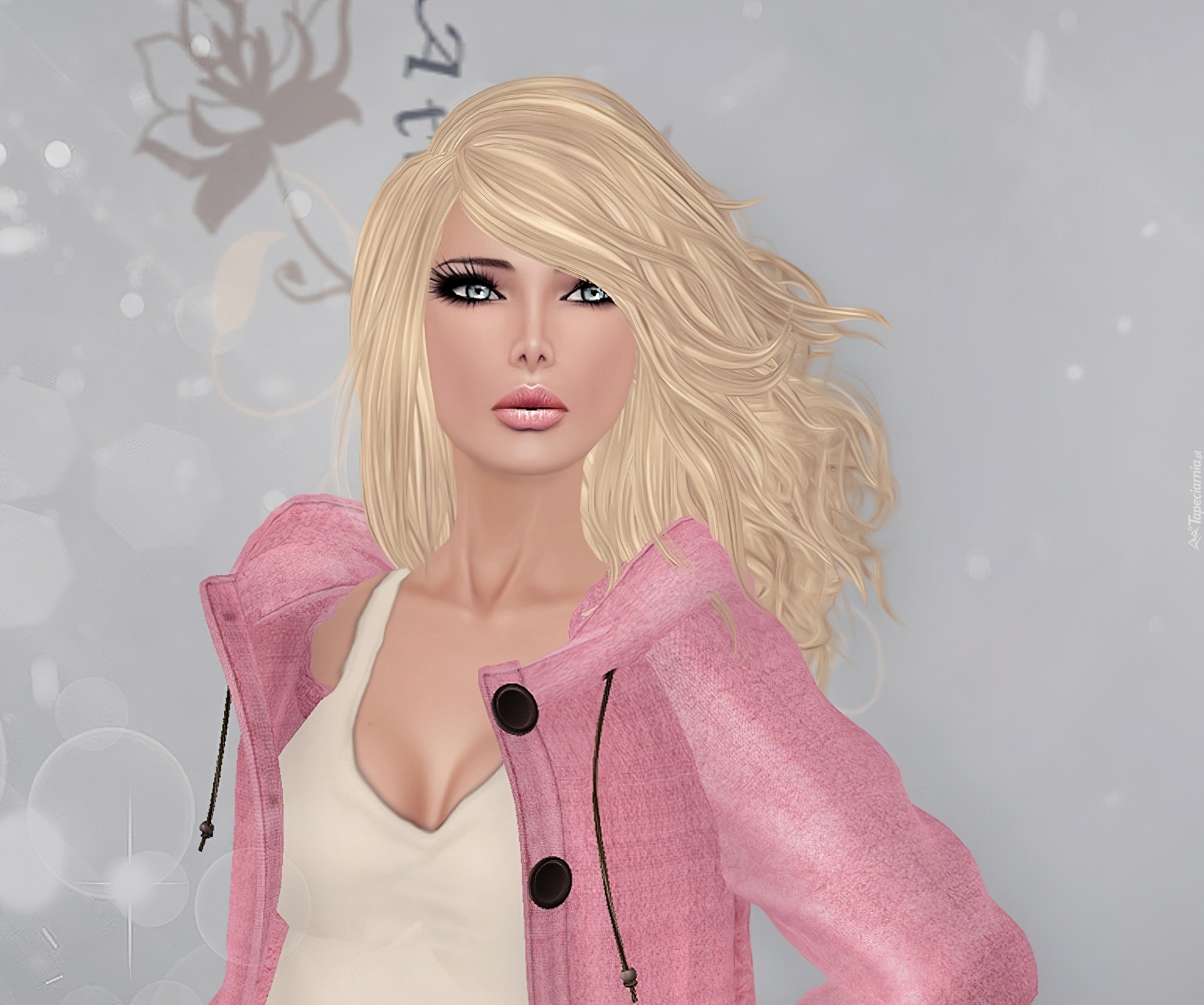 Edytor tapety: Kobieta, Blondynka, Grafika, Różowa, Bluza