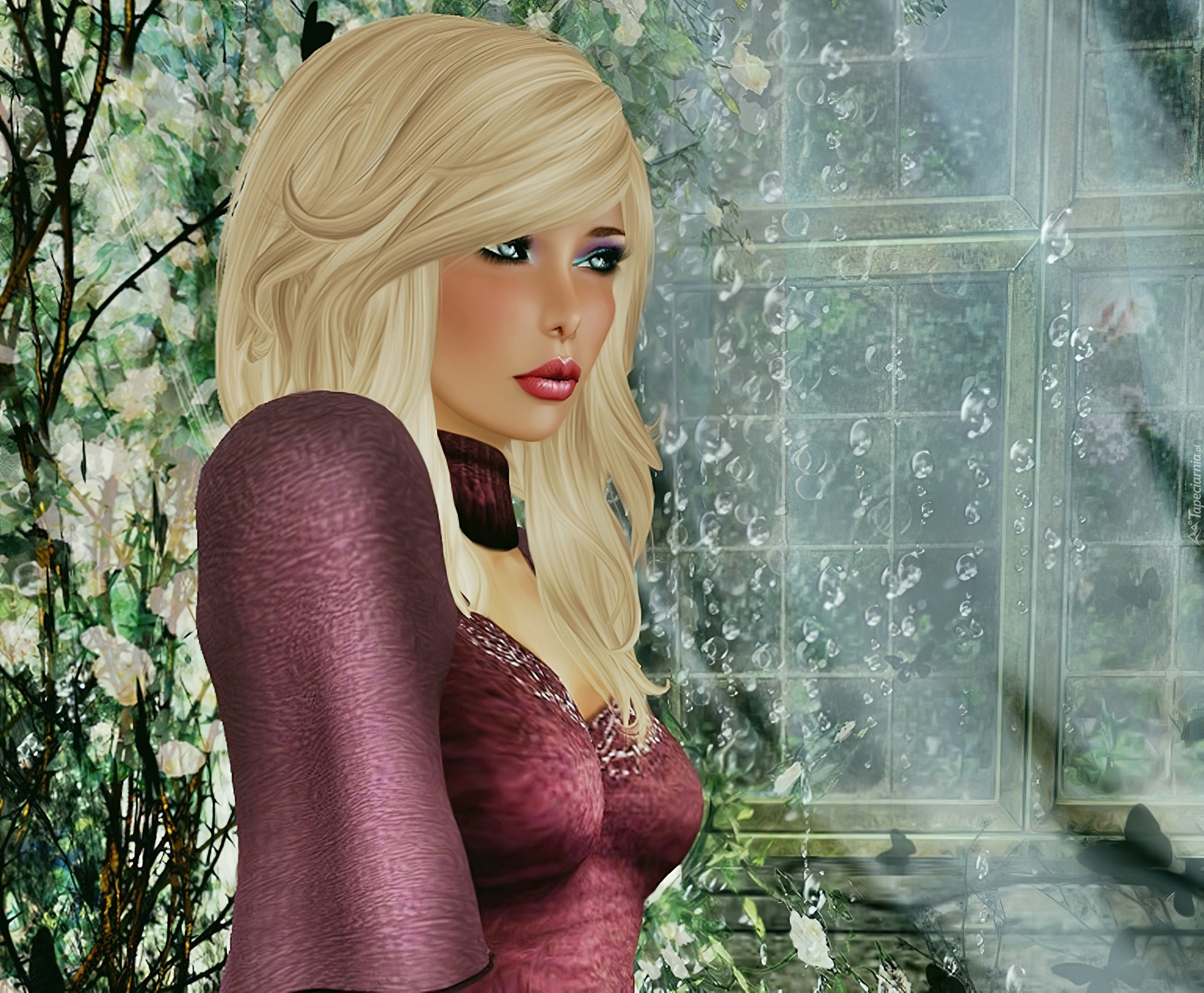 Edytor tapety: Zamyślona, Kobieta, Grafika