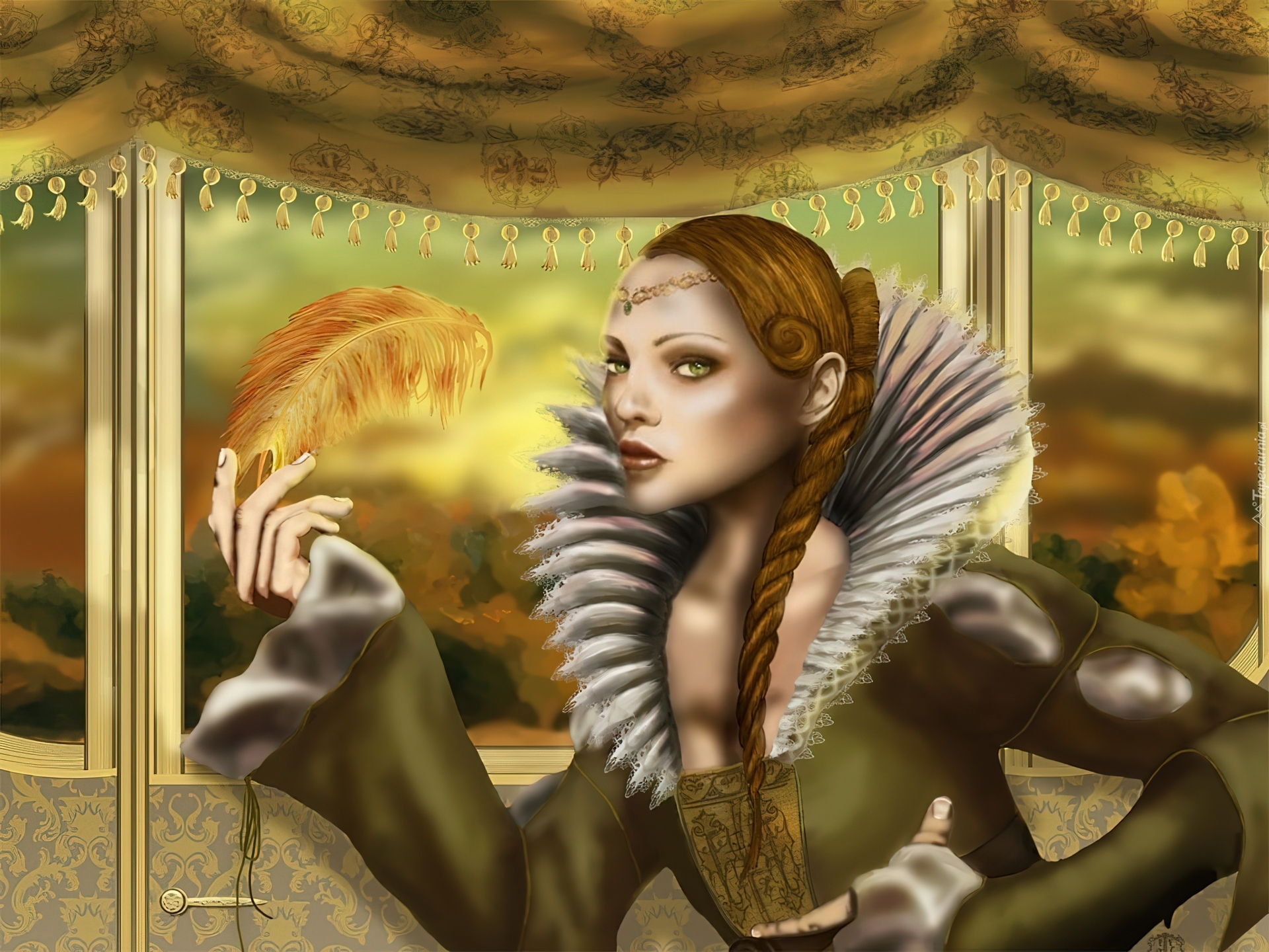 Edytor tapety: Kobieta, Zielone, Oczy, Piórko