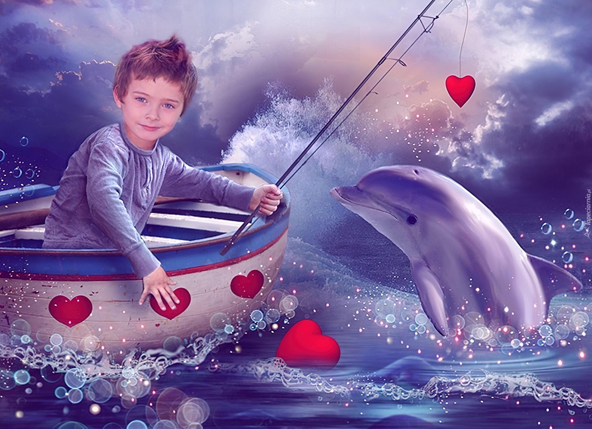 Edytor tapety: Chłopiec, Delfin, Serca