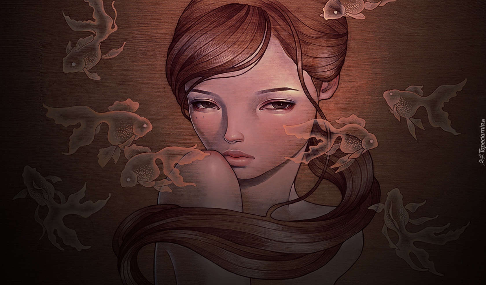 Edytor tapety: Dziewczyna, Włosy, Rybki