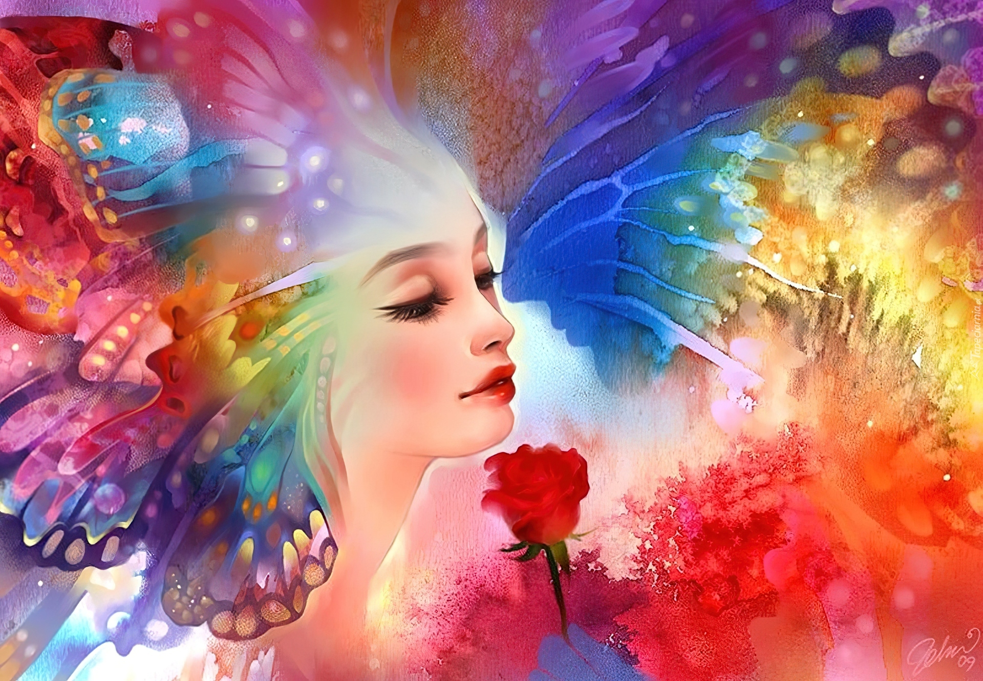 Edytor tapety: Kobieta, Motyl, Fantazja