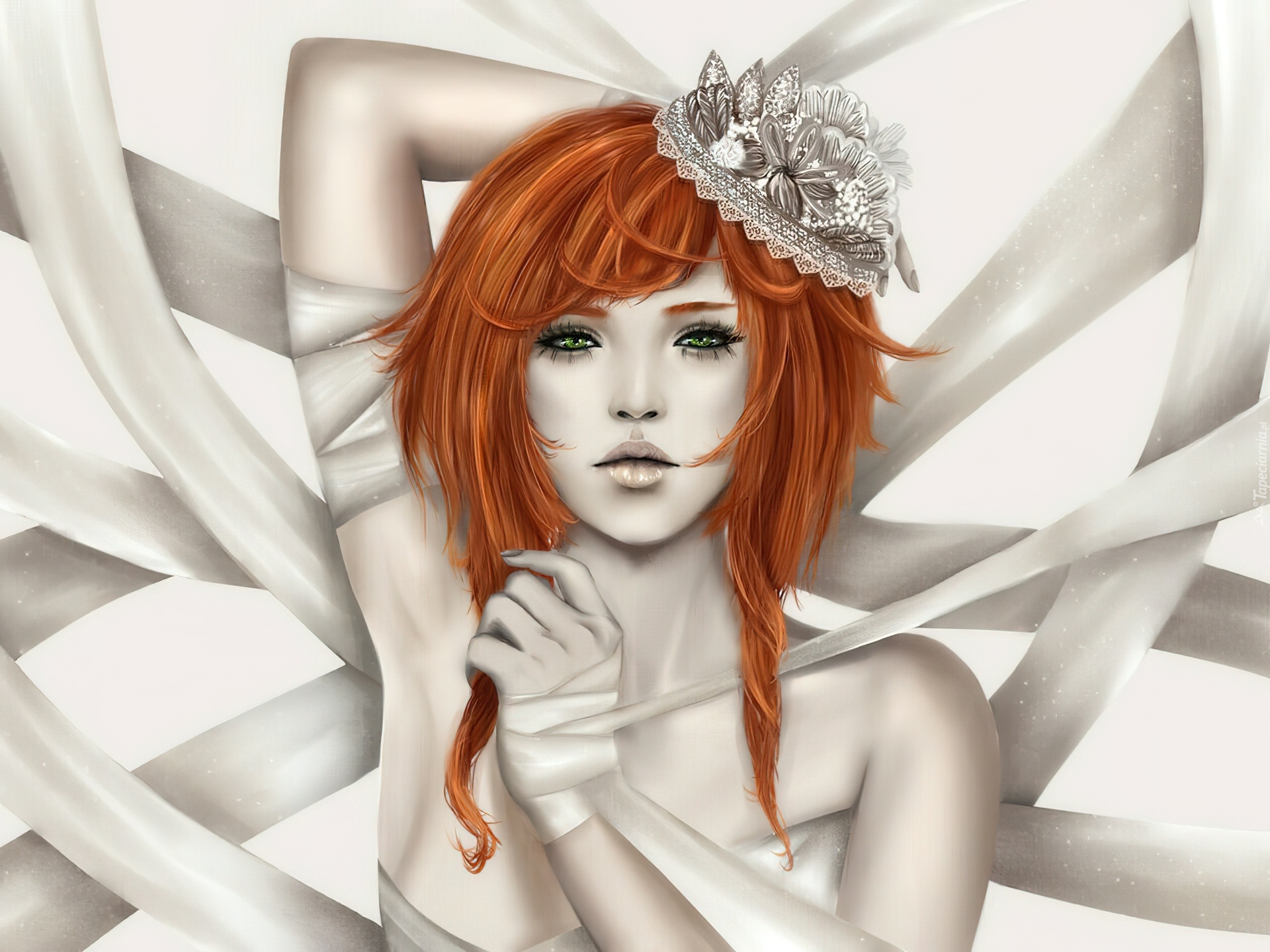 Edytor tapety: Rudowłosa, Dziewczyna, Wstęgi