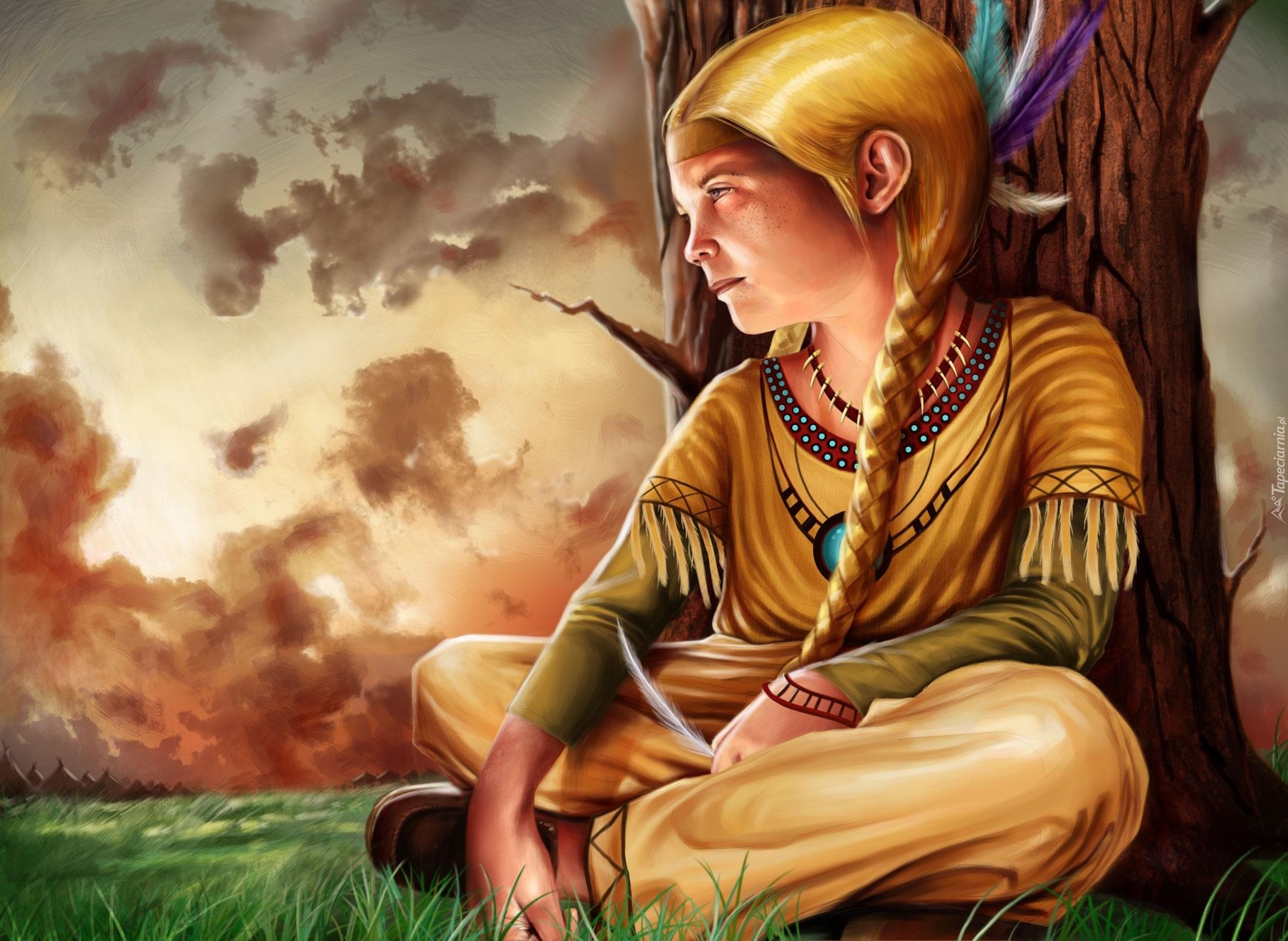 Edytor tapety: Indianka, Warkocz, Drzewo