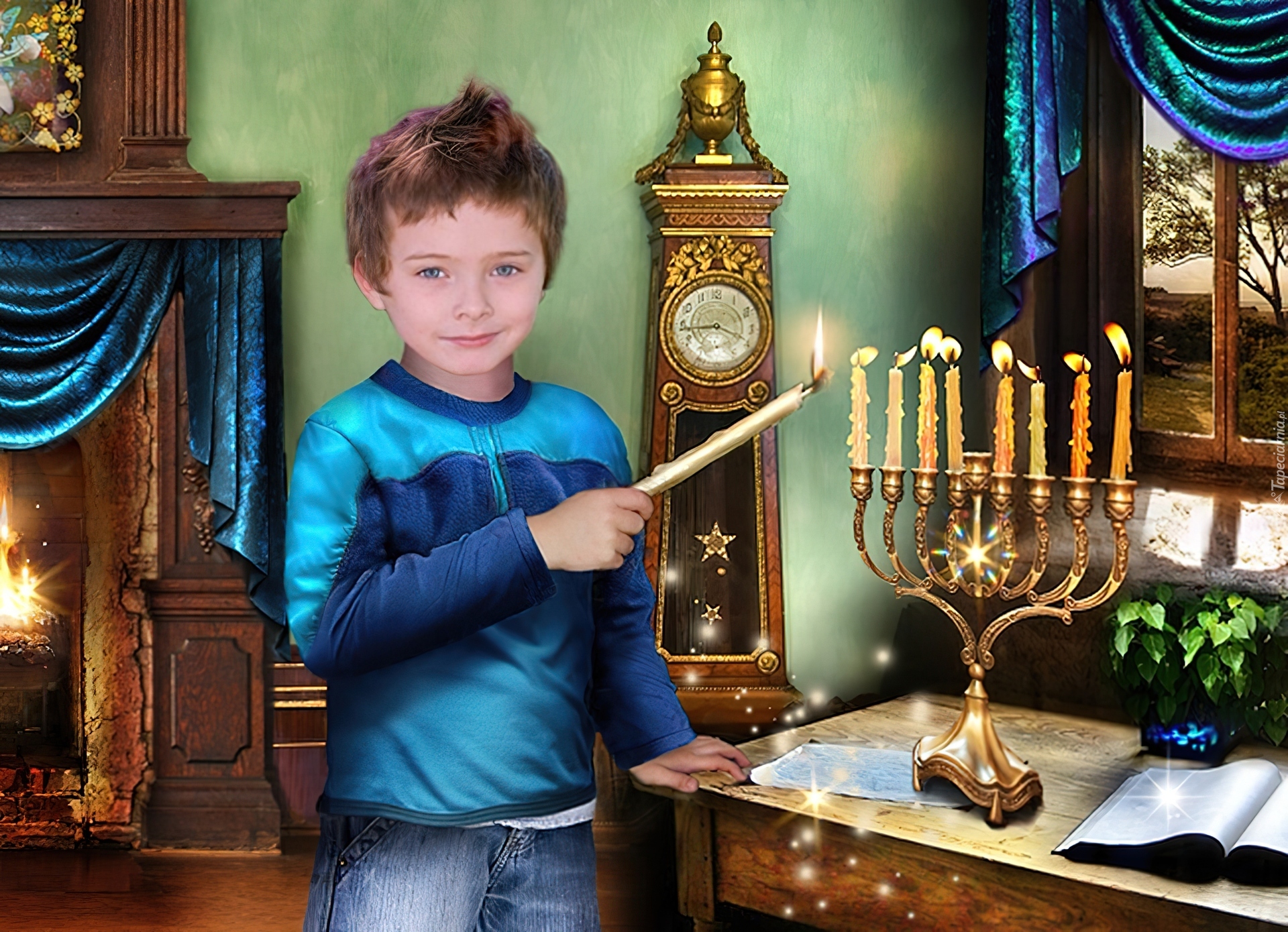 Edytor tapety: Chłopiec, Świecznik, Święto, Hannukah, Świece