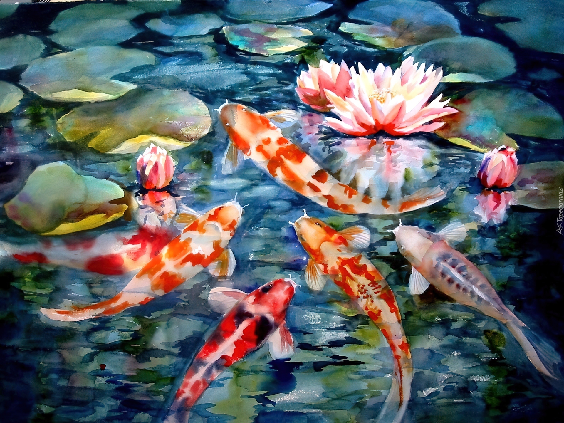 Edytor tapety: Ryby, Karp Koi, Staw, Lilie, Wodne