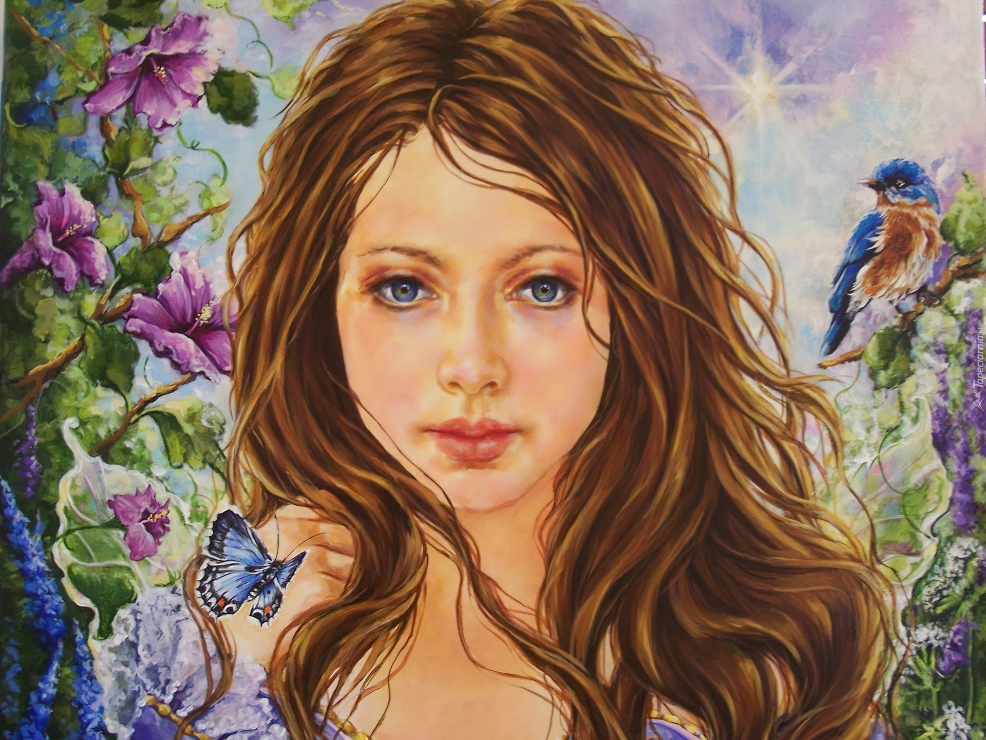 Edytor tapety: Dziewczynka, Ptak, Motyl