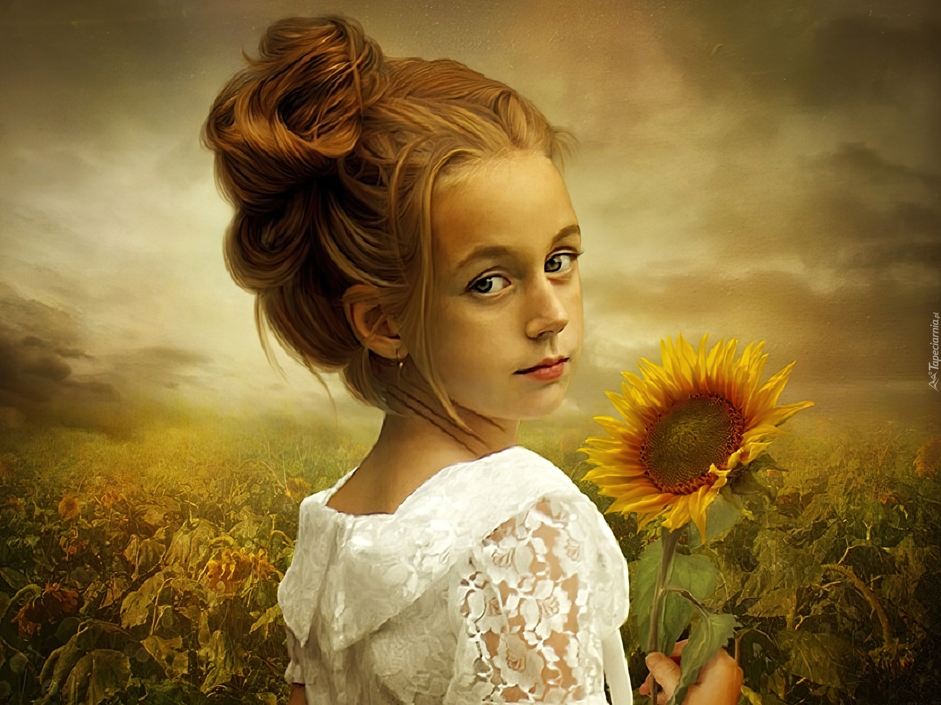 Edytor tapety: Dziewczynka, Słonecznik