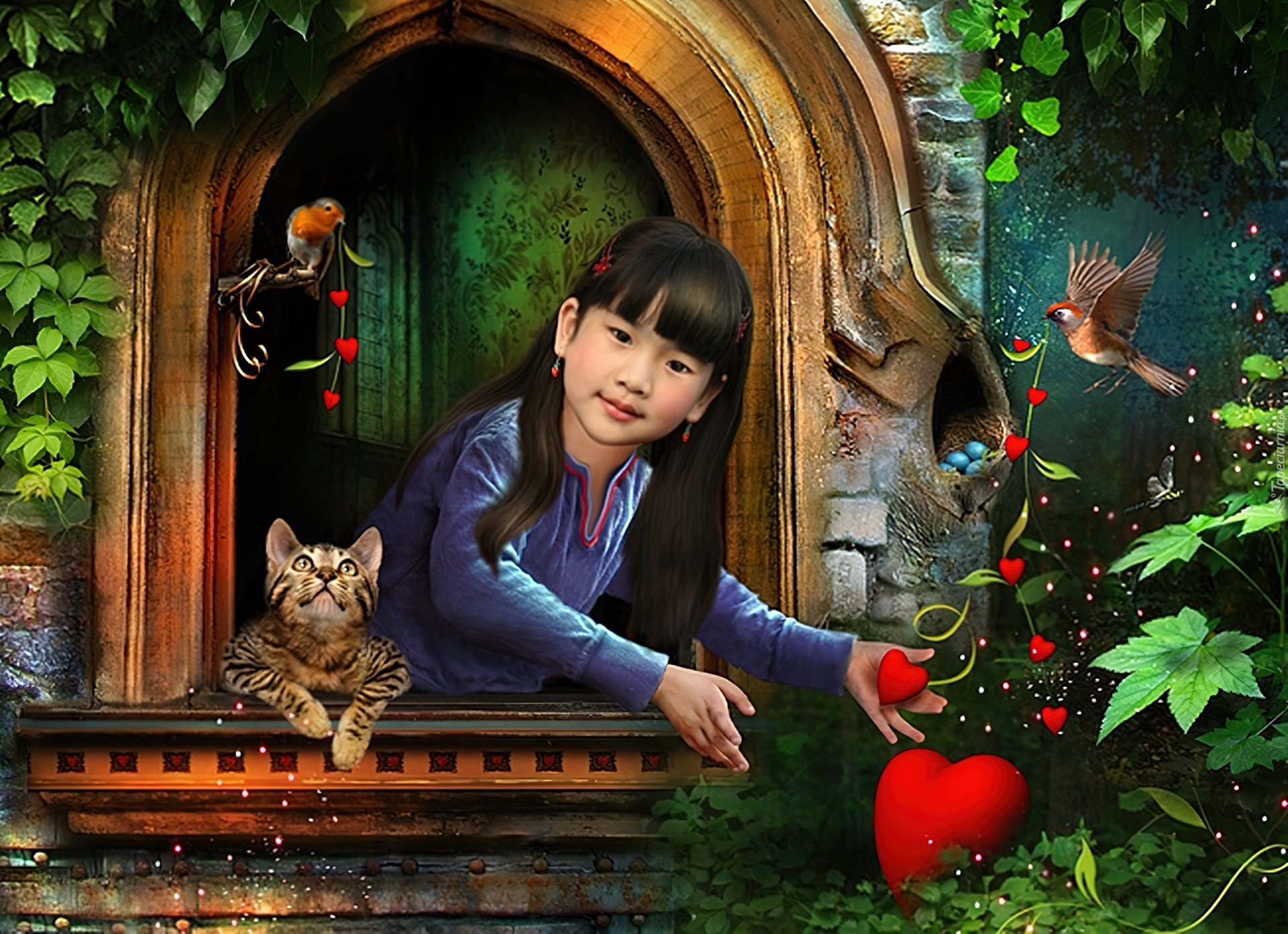 Edytor tapety: Dziewczynka, Serca, Walentynki