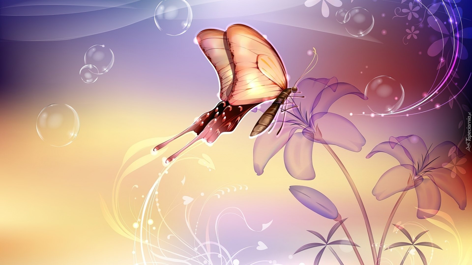 Edytor tapety: Ładny, Motyl, Kwiaty