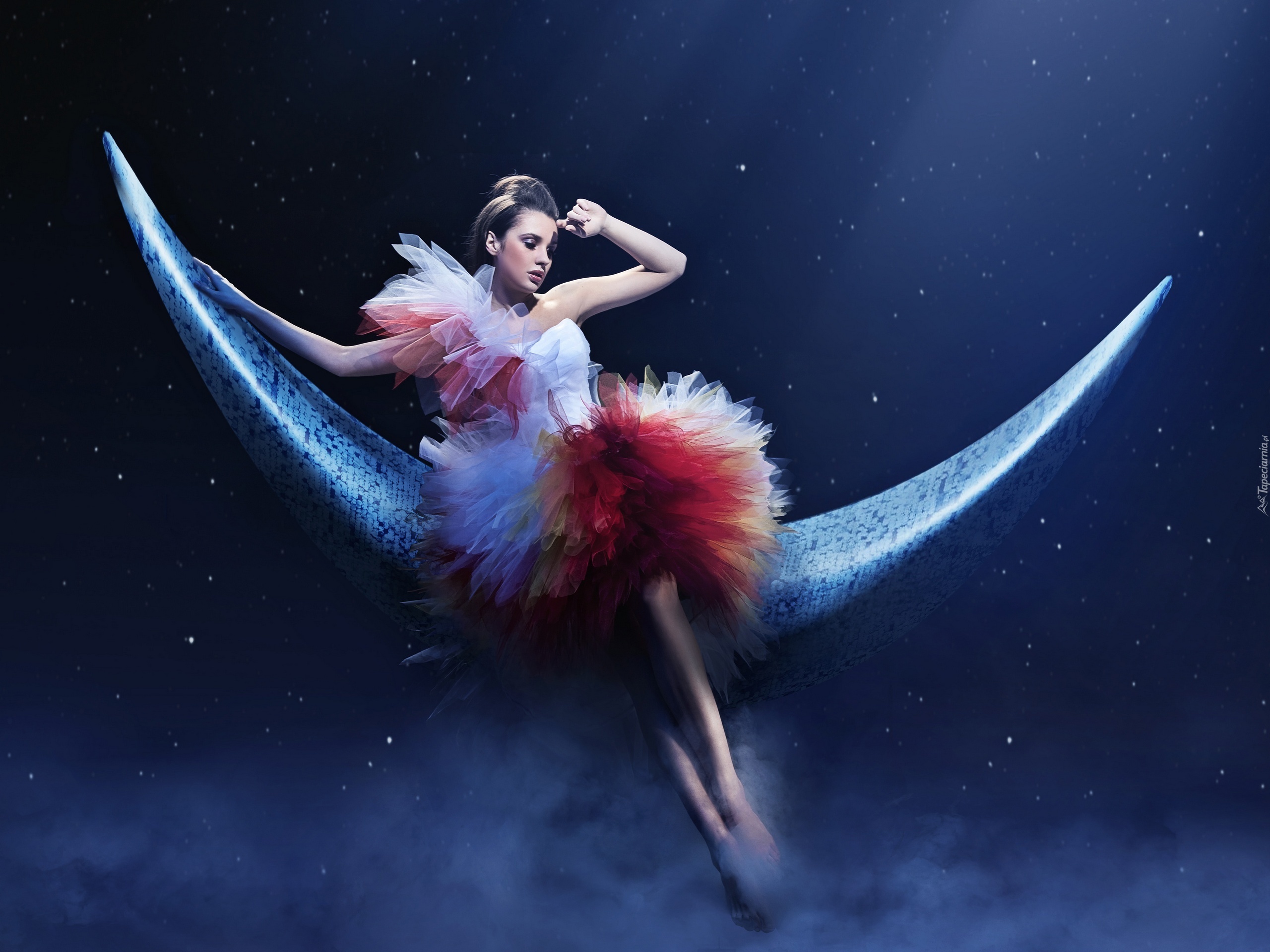 Edytor tapety: Kobieta, Na, Księżycu, Niebo