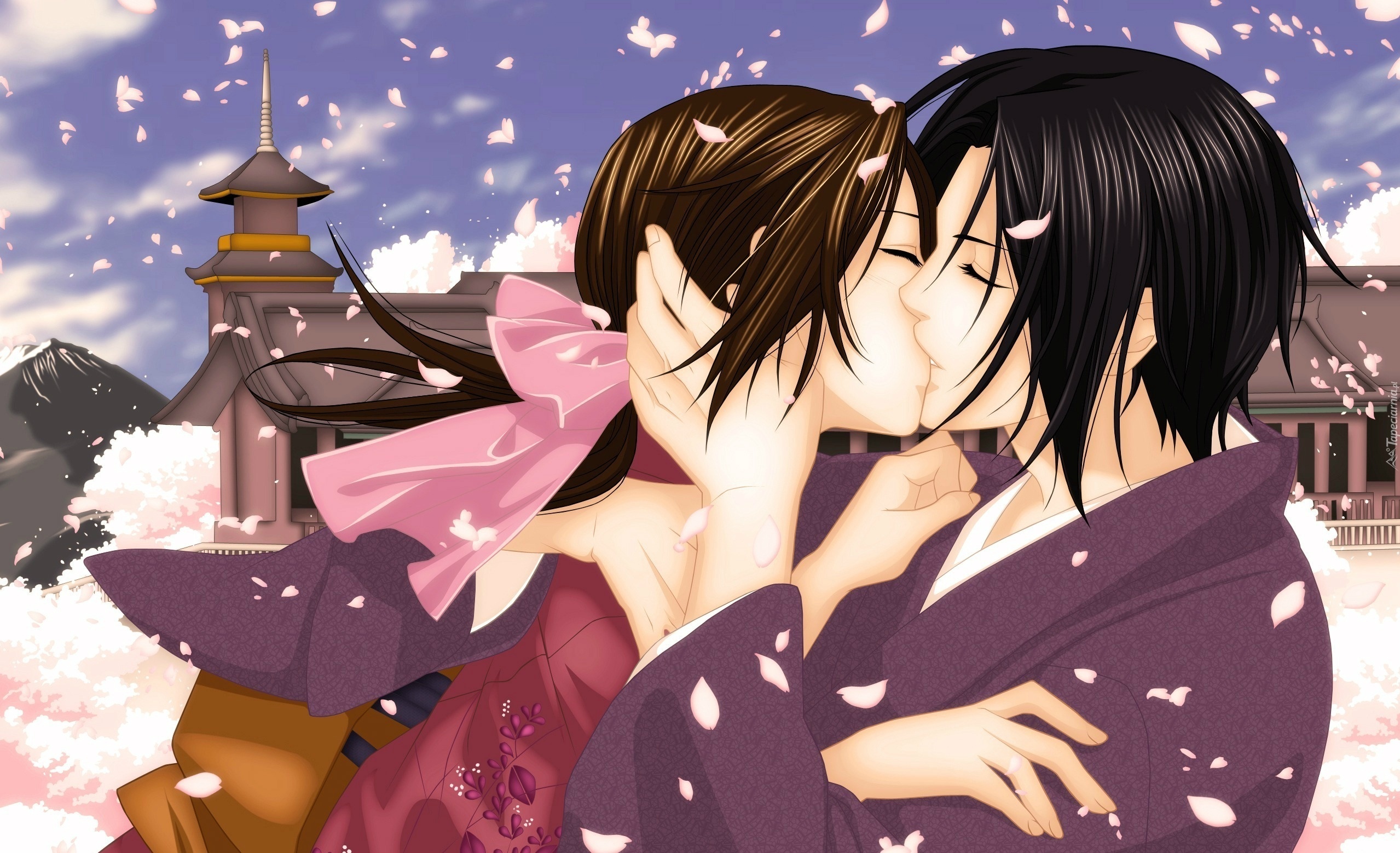 Edytor tapety: Dziewczyna, Chłopak, Pocałunek, Płatki