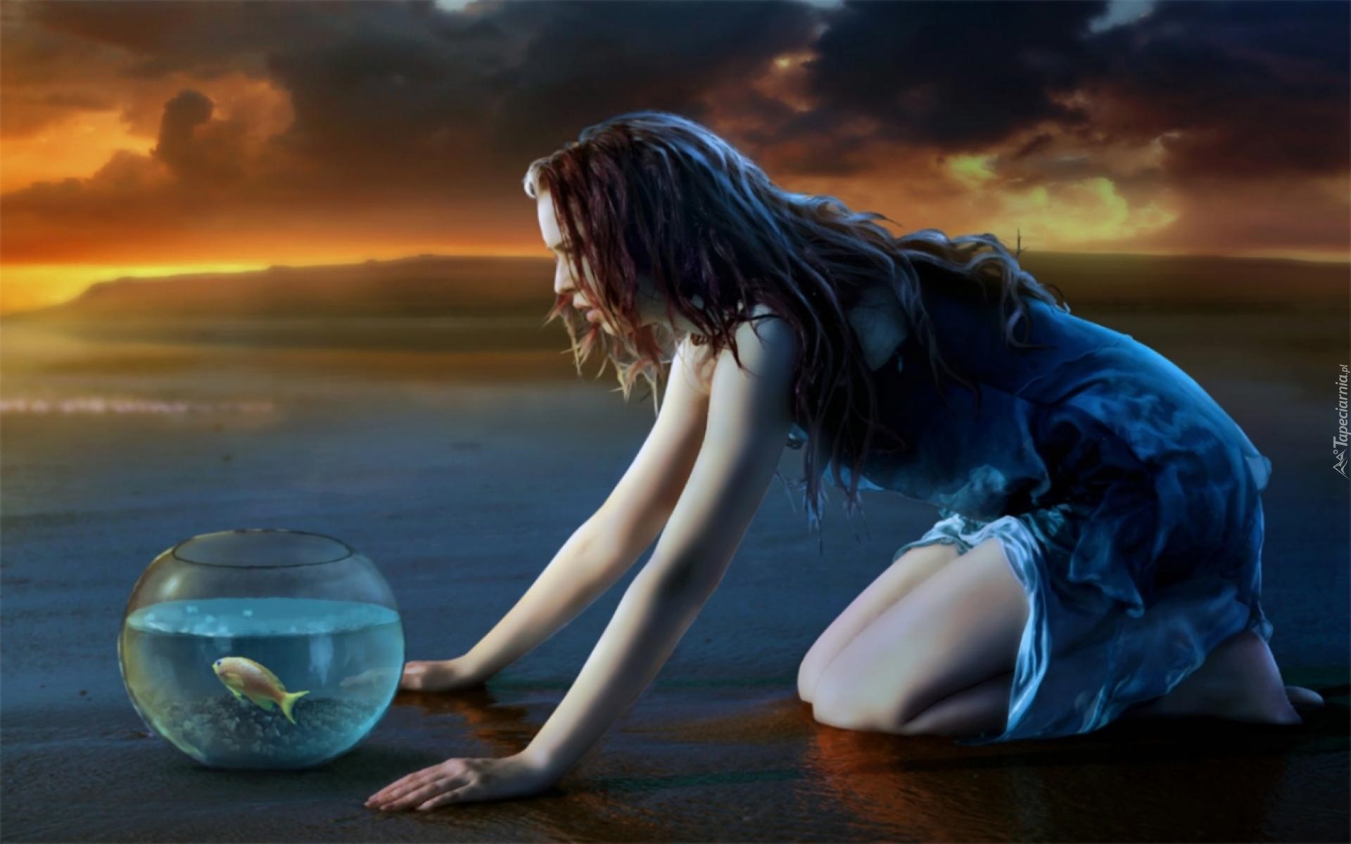 Edytor tapety: Dziewczyna, Rybka, Woda