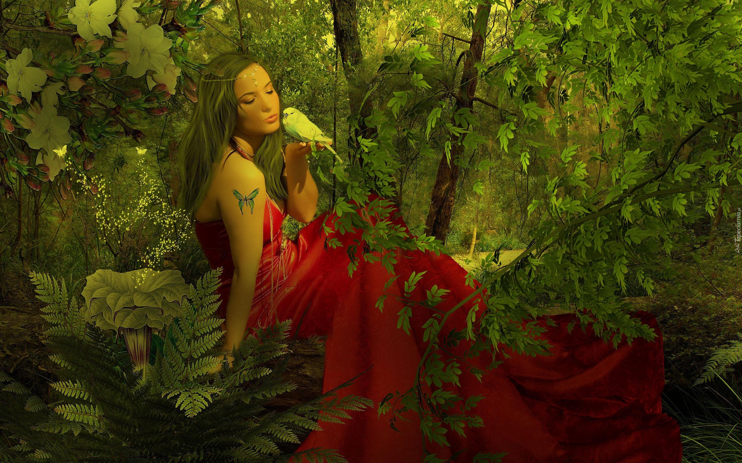 Edytor tapety: Dziewczyna, Tatuaż, Ptak, Drzewa
