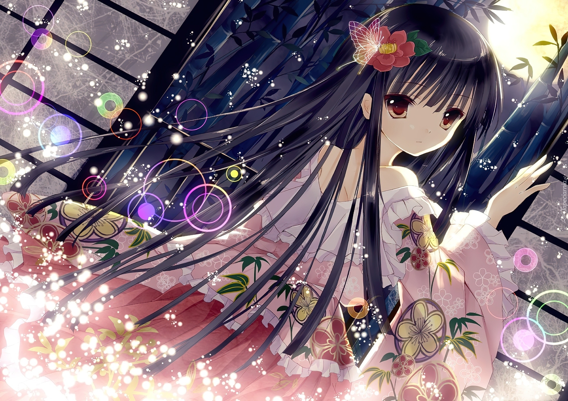 Edytor tapety: Dziewczyna, Kwiatek, Motyl, Bambus