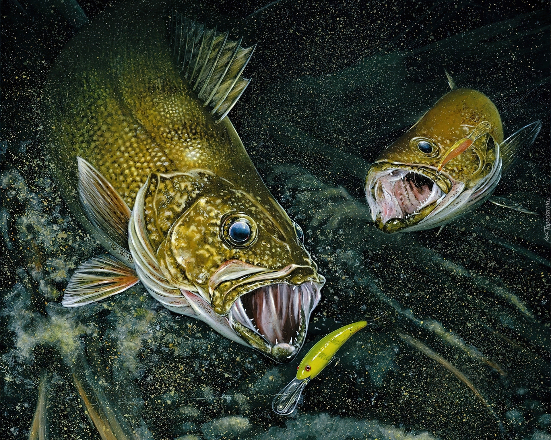 Edytor tapety: Dwie, Ryby, Przynęta, Woda