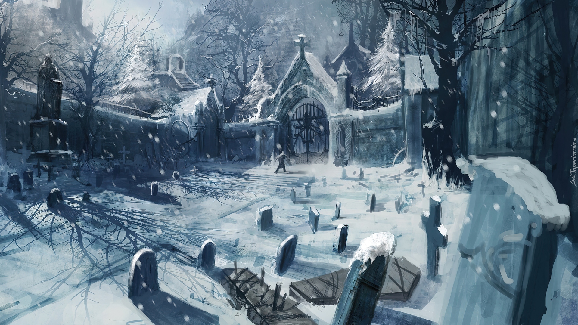 Edytor tapety: Zima, Śnieg, Cmentarz