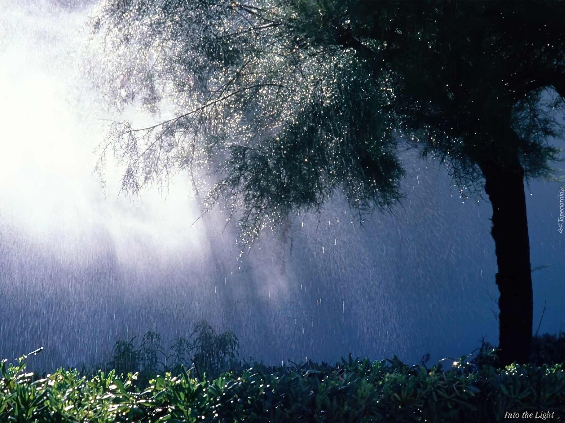 Edytor tapety: Deszcz, Drzewo, Przebijające Światło