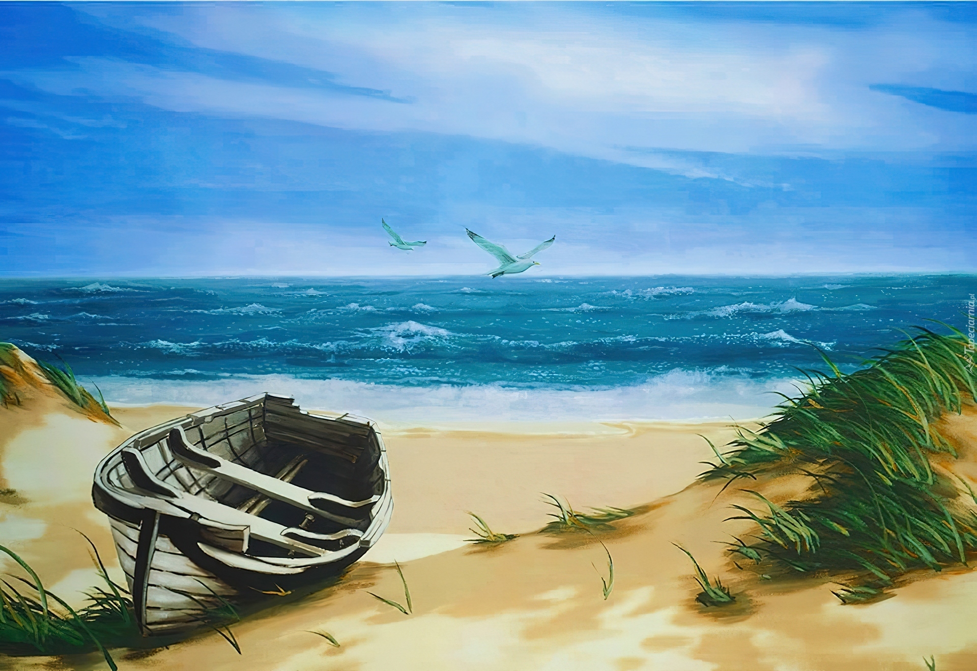 Edytor tapety: Krajobraz, Plaża, Łódka, Morze