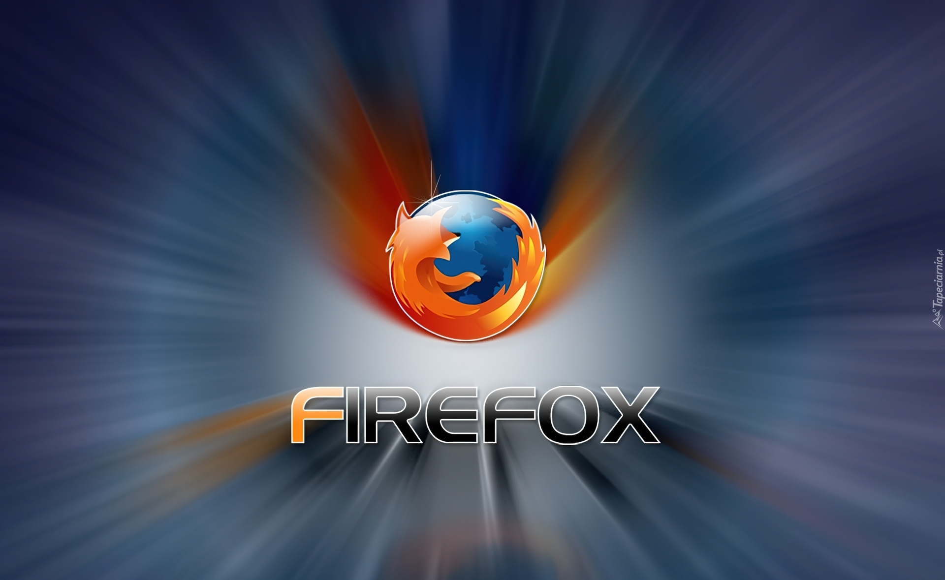 Edytor tapety: Logo, Firefox, Niebieskie, Promieniste, Tło