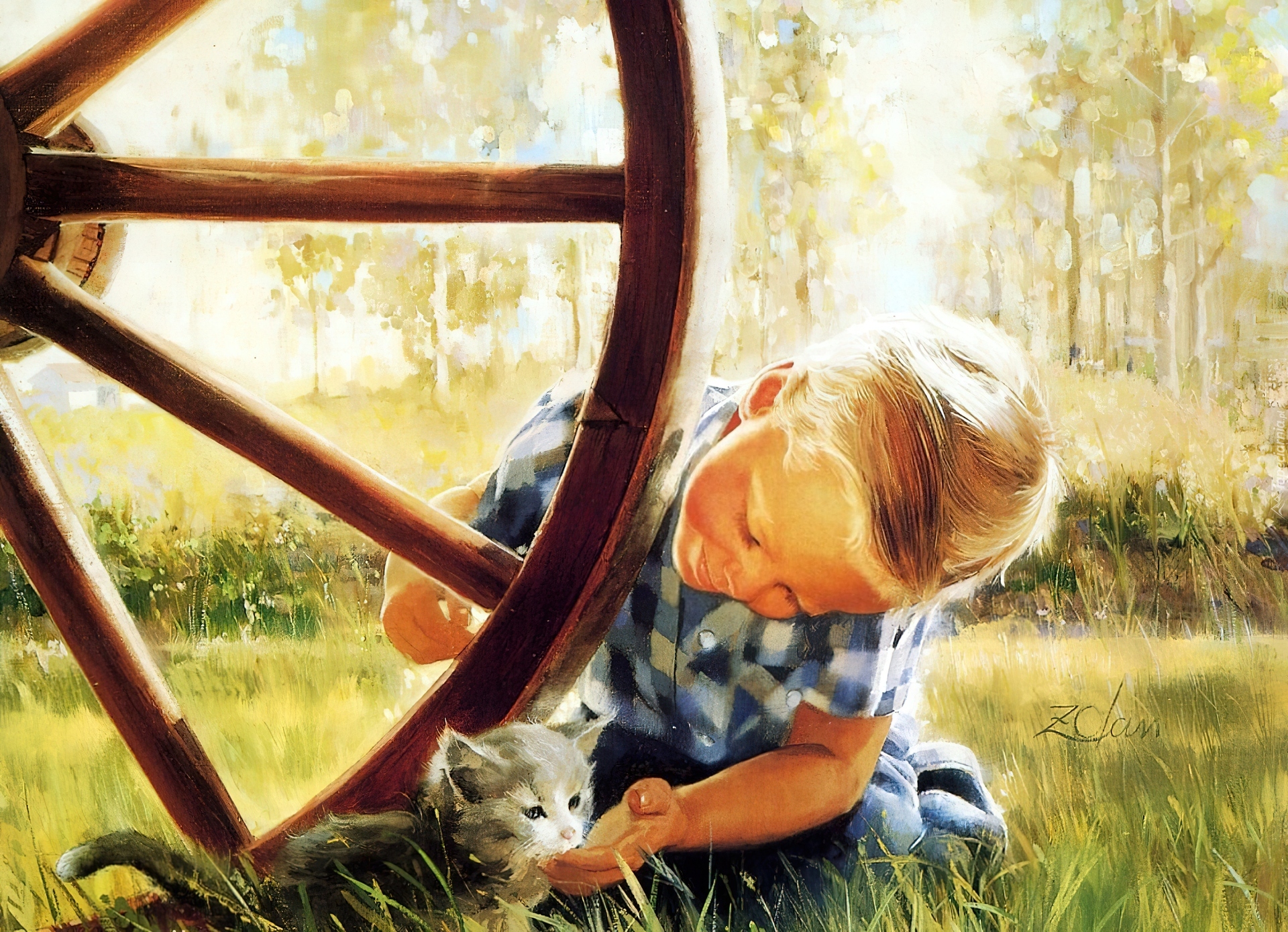 Edytor tapety: Chłopiec, Koło, Kotek