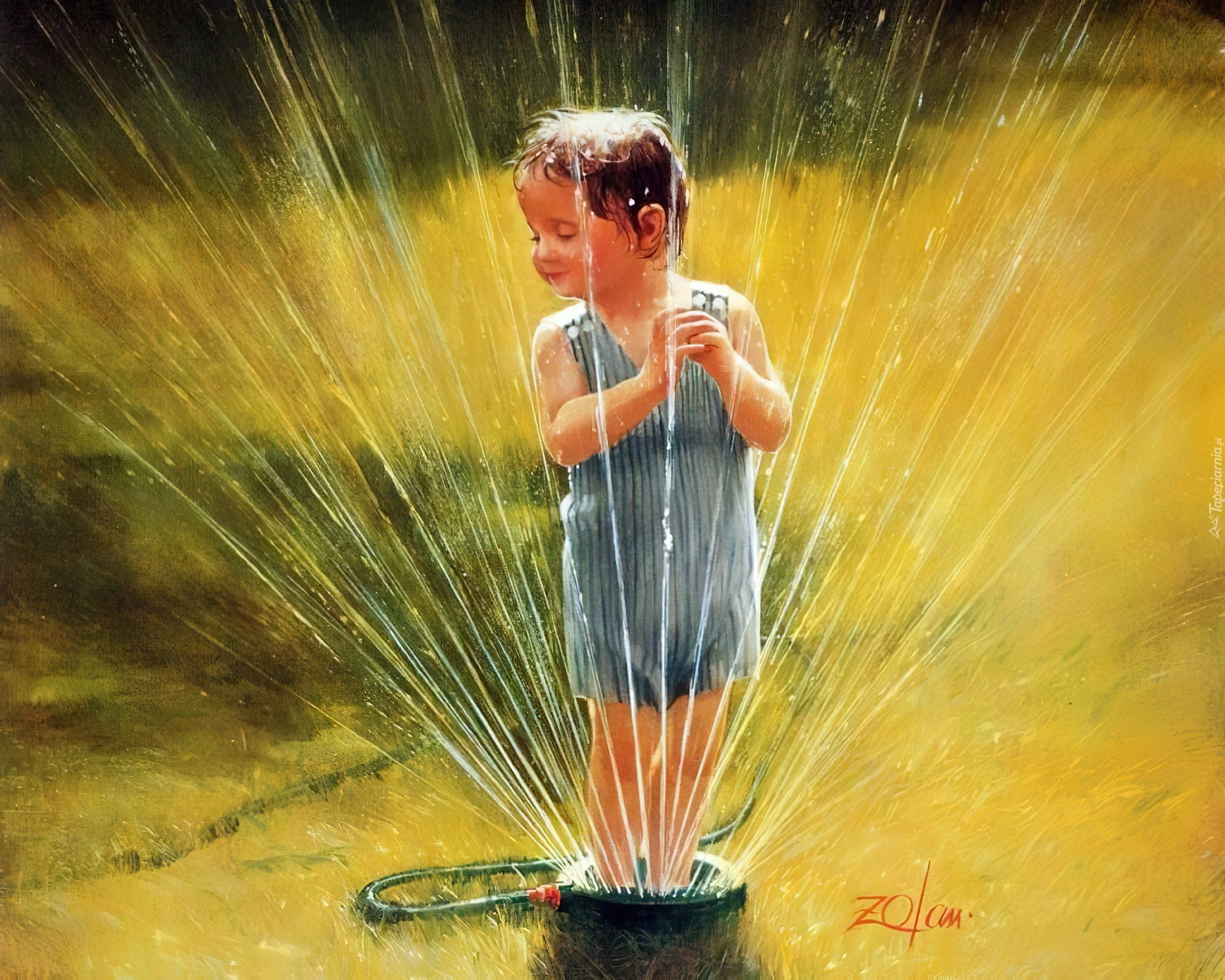 Edytor tapety: Dziecko, Ogród, Zraszacz
