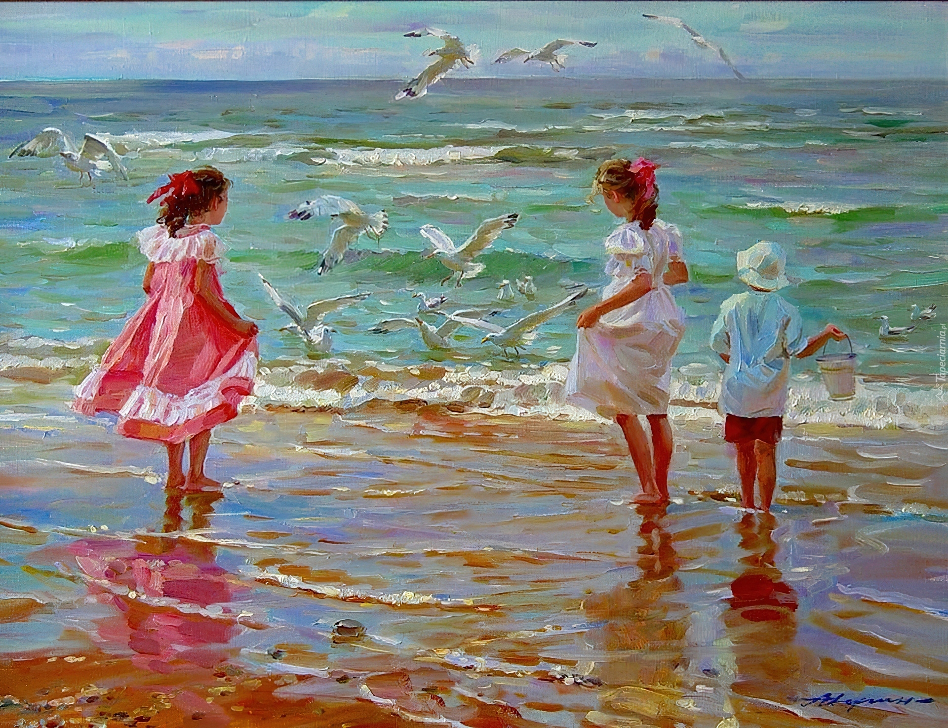 Edytor tapety: Dzieci, Morze, Ptaki