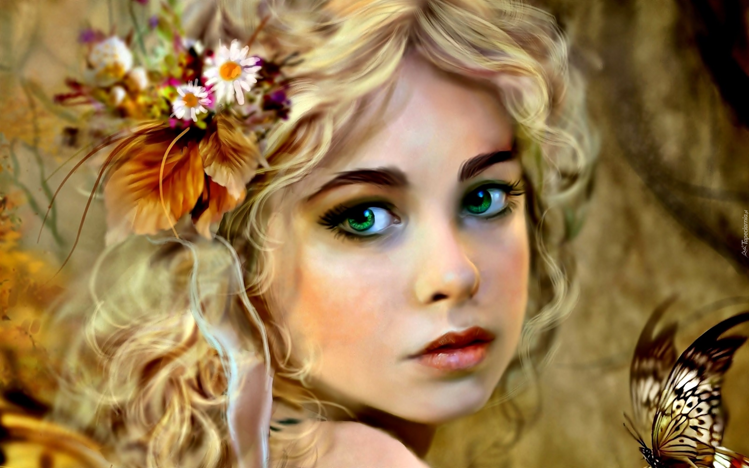Edytor tapety: Dziewczyna, Zielone, Oczy, Motyl