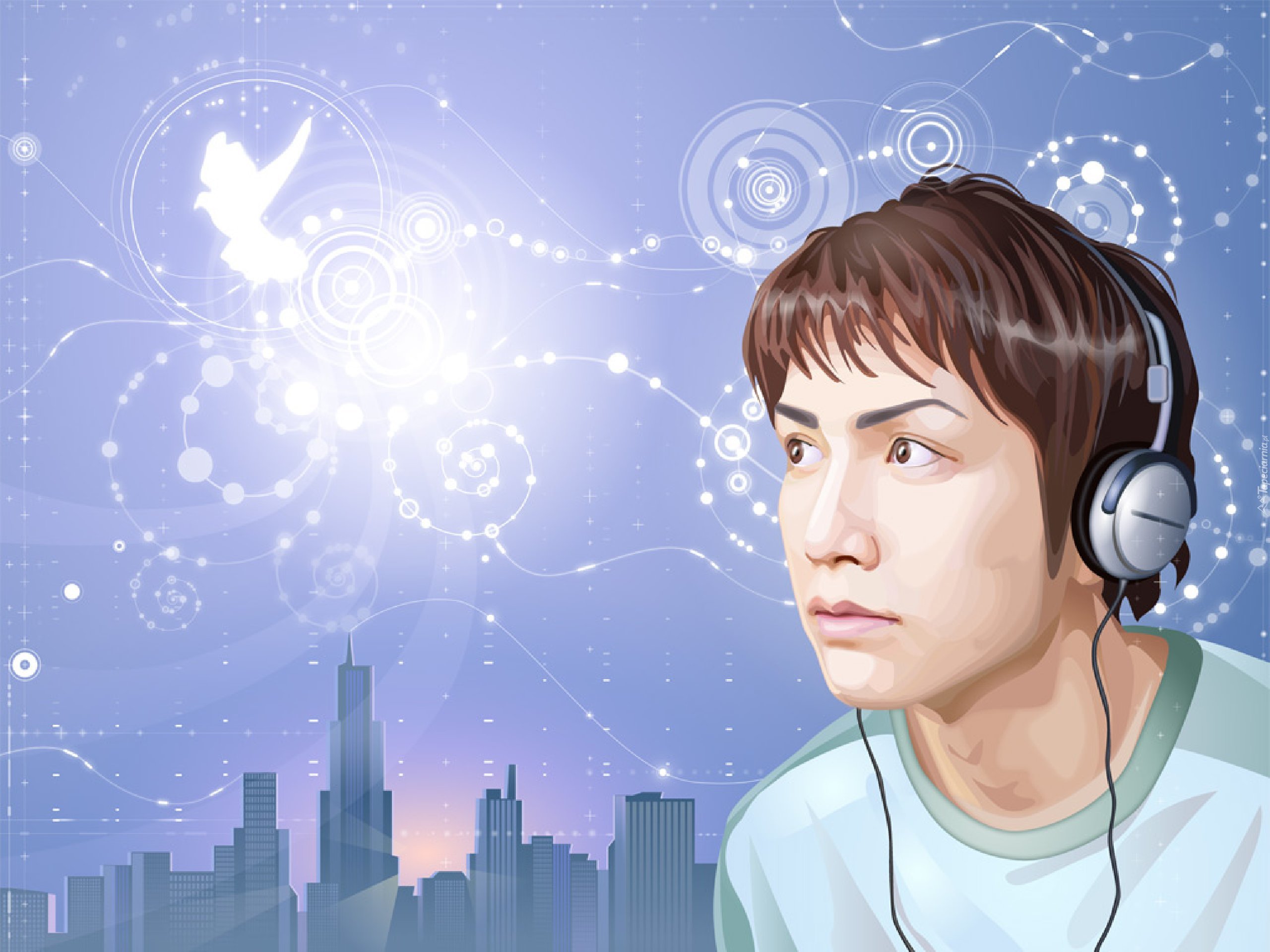 Edytor tapety: Chłopak, Słuchawki, DJ