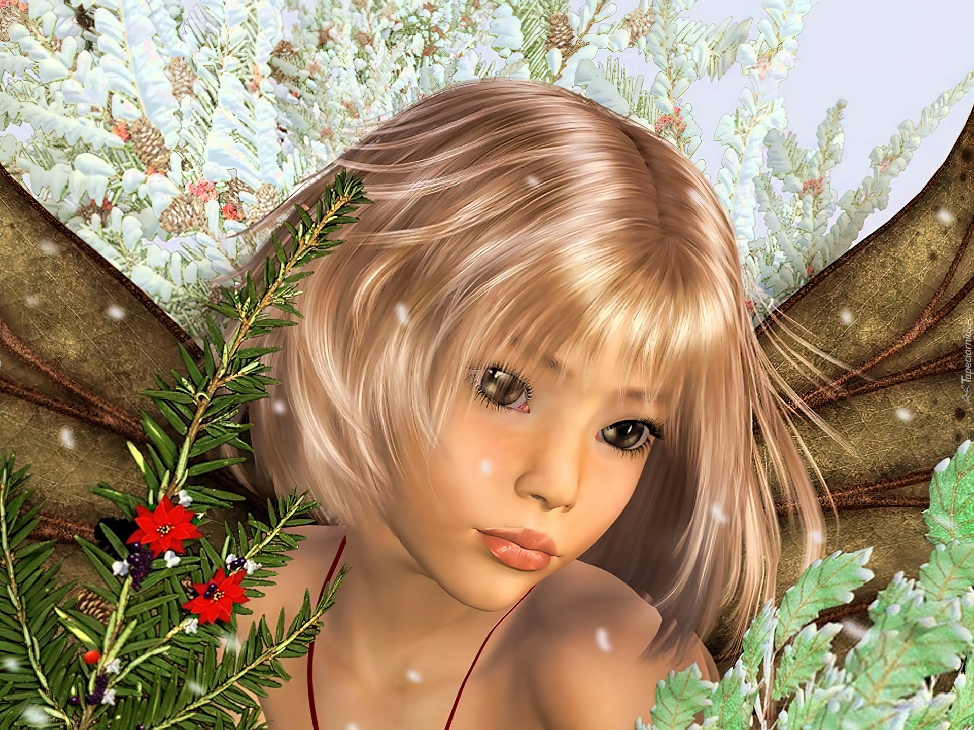 Edytor tapety: Dziewczyna, Motyl, Gałązki