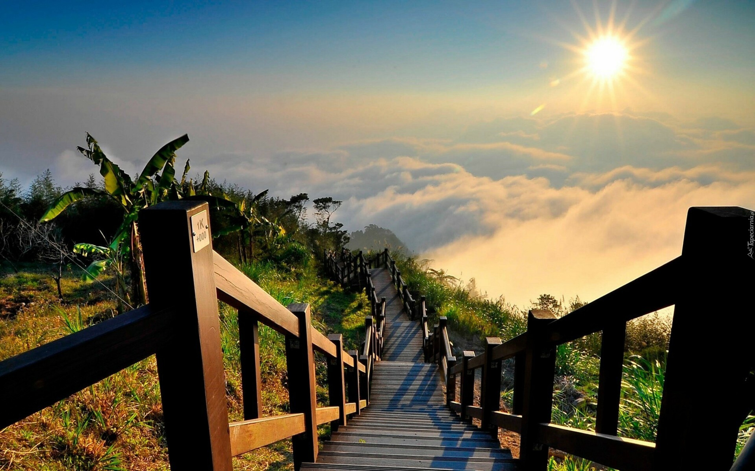 Edytor tapety: Widok, Chmury, Słońce, Góry